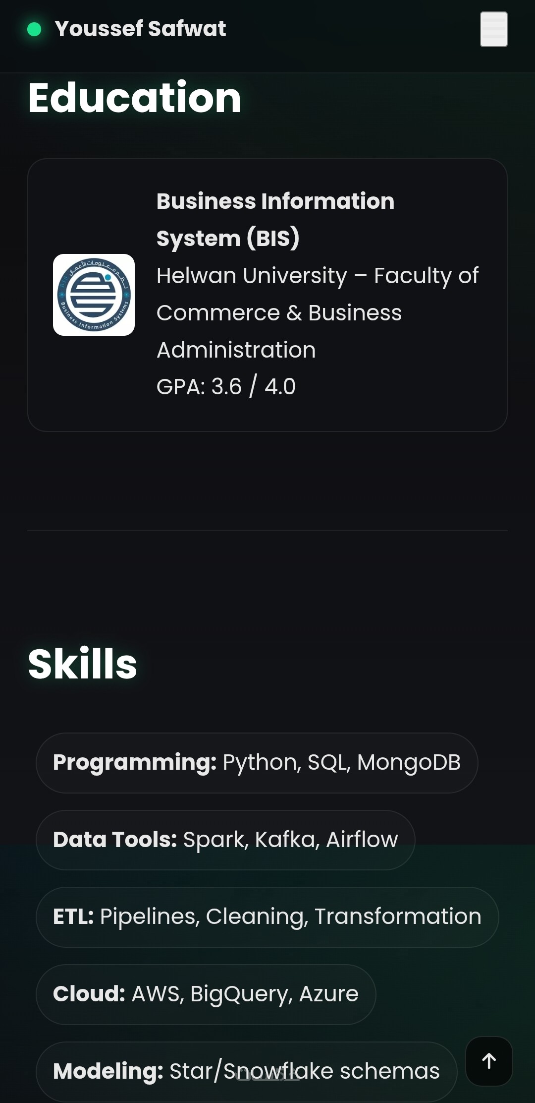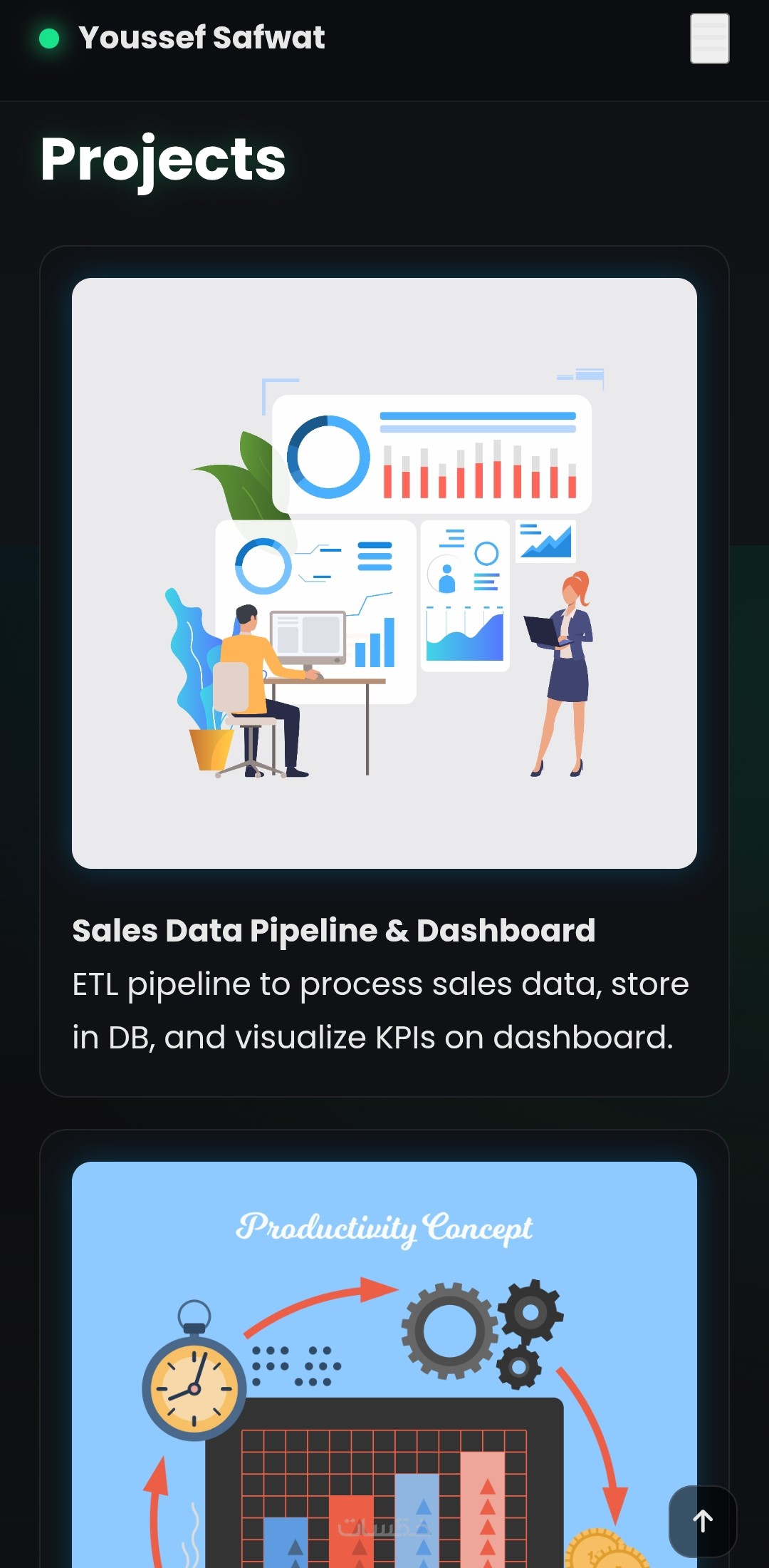 5-قسم مخصص للمشاريع يحتوي على صور، روابط، ووصف لكل مشروع.