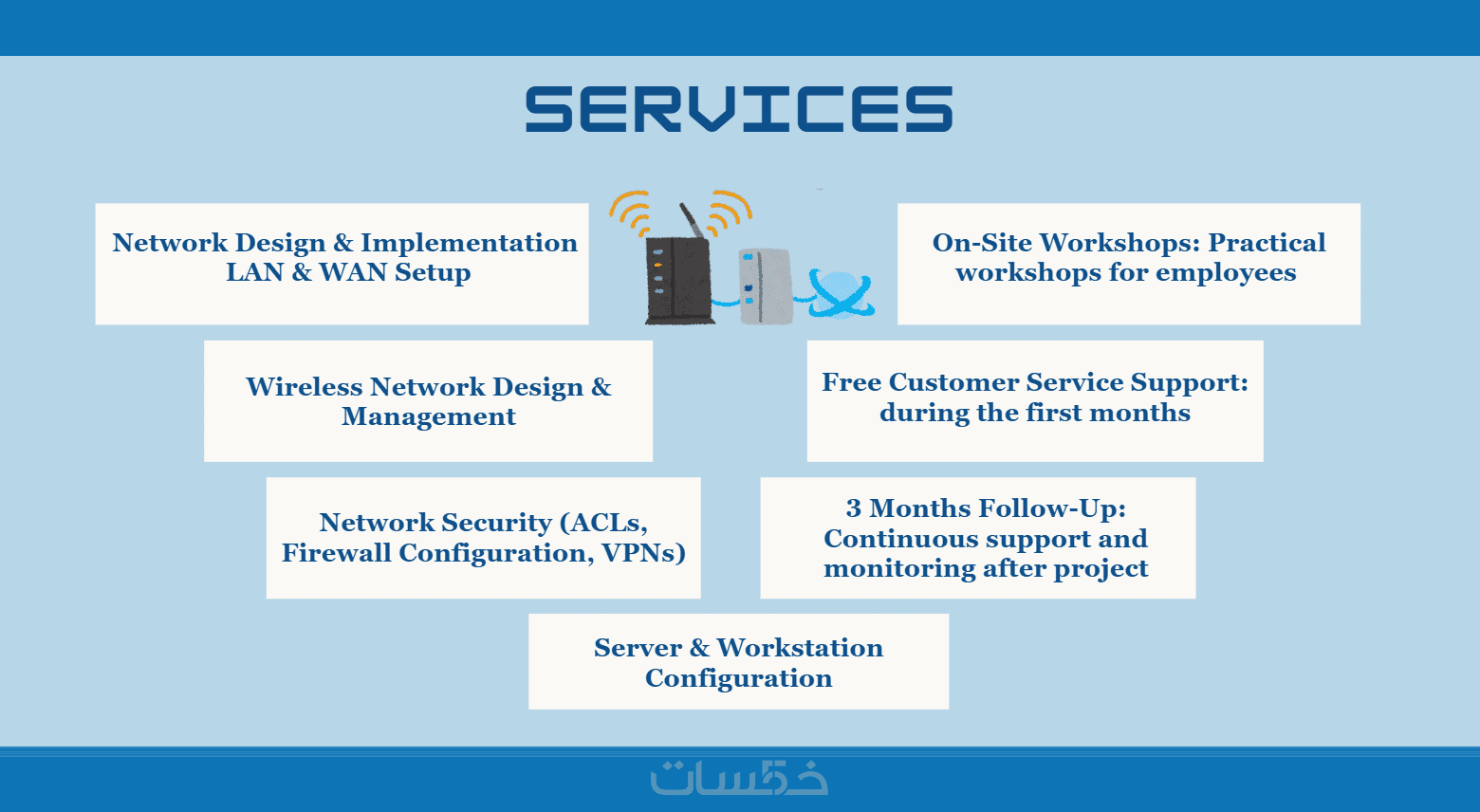 الصفحات الأساسية (الرئيسية – من نحن – الخدمات – تواصل معنا).