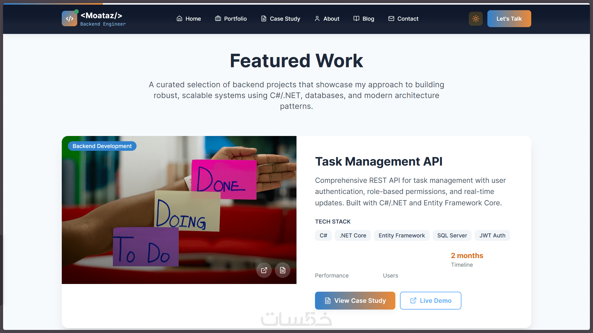 صفحة أعمال تعرض مشاريعك مع صور + وصف.