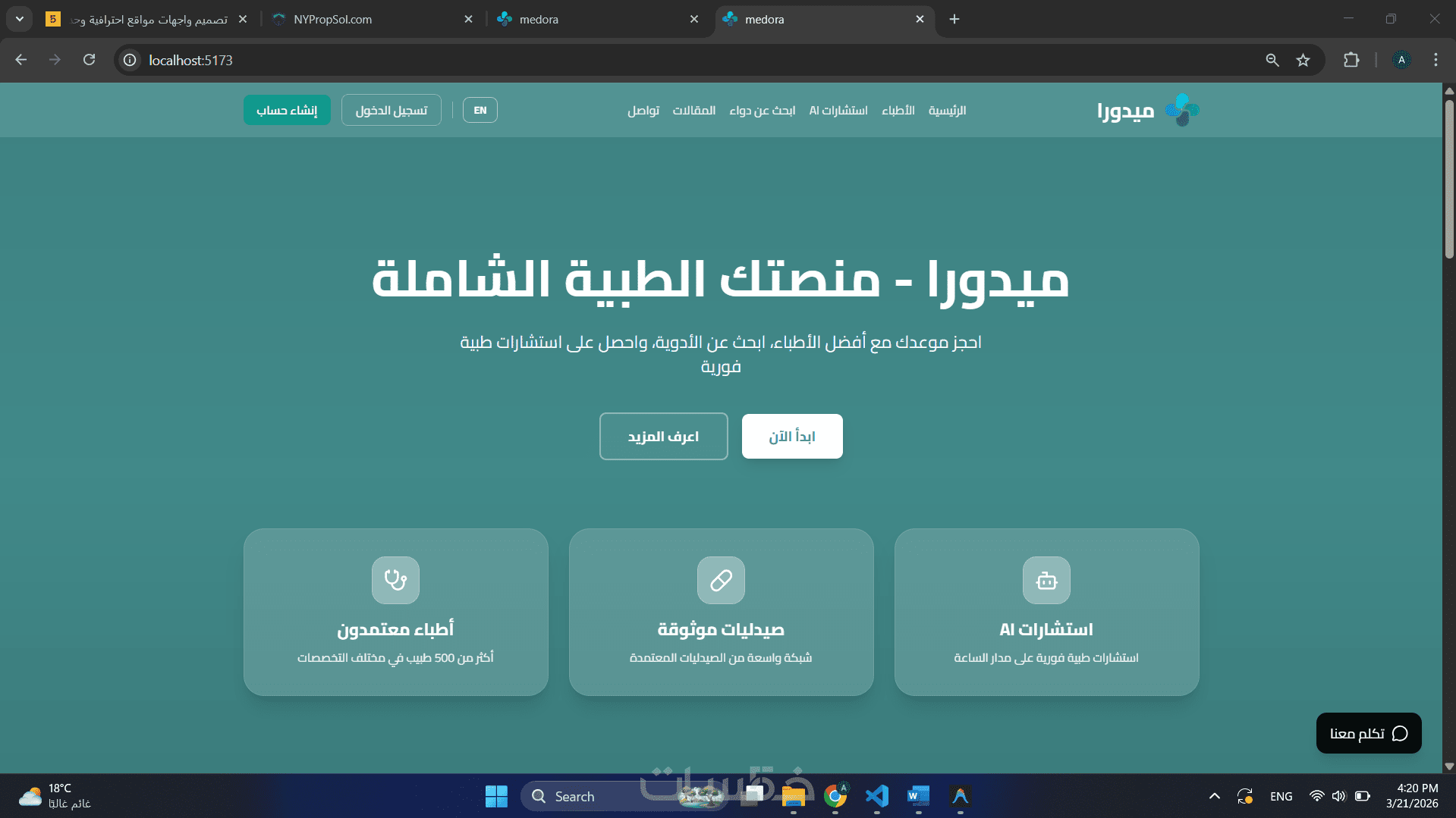 1-صفحة ويب احترافية مبنية بـ React.js