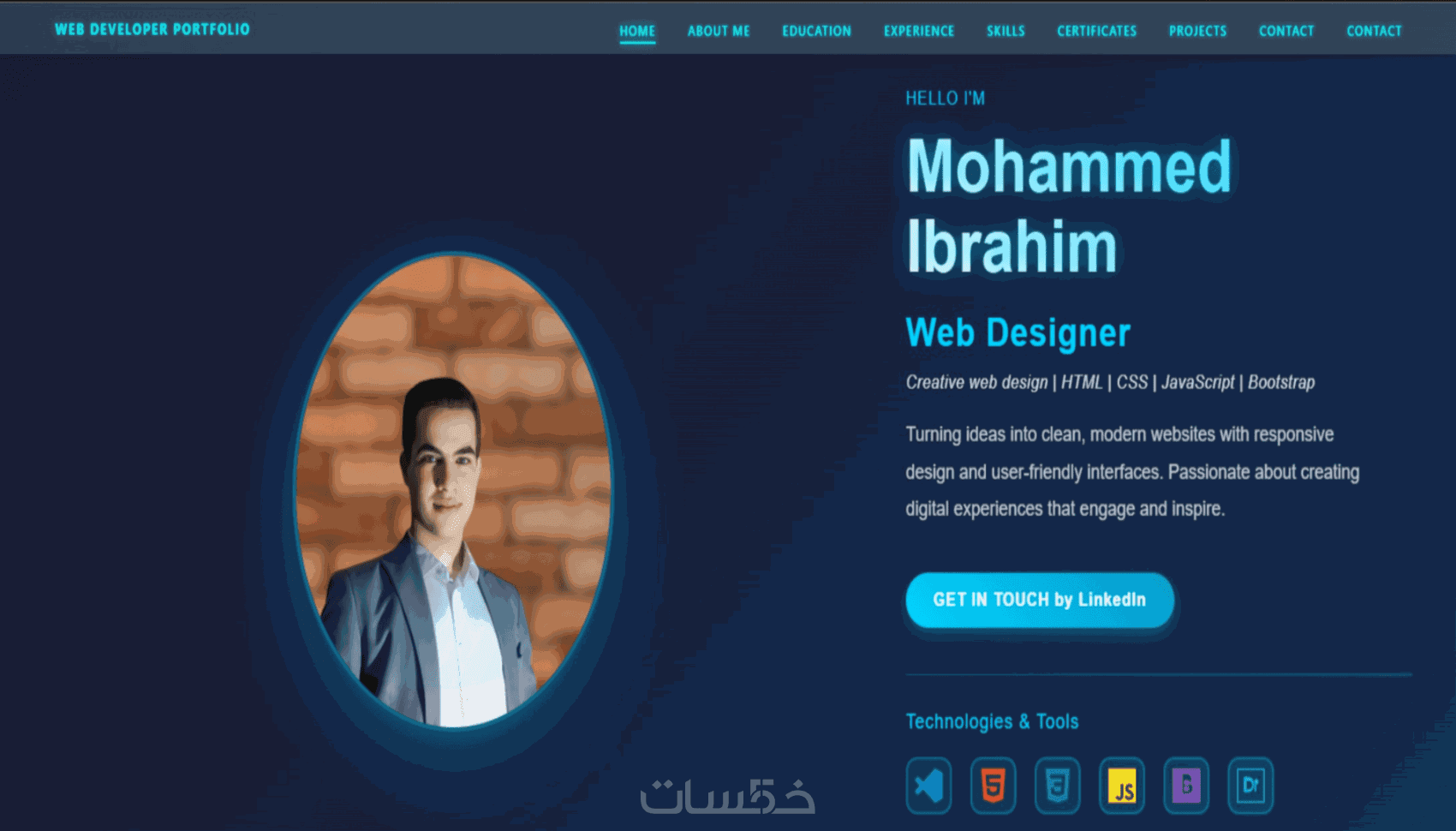 بني موقعك باستخدام HTML5، CSS3، JavaScript، وTailwind CSS لضمان واجهة حديثة، تفاعلية، وسريعة الاستجابة بتصميم يلفت الانتباه ويُظهر احترافيتك.