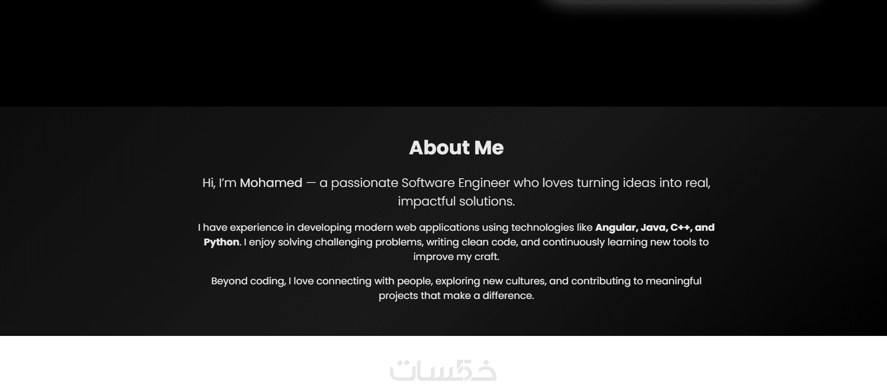 يشمل التصميم صفحات: رئيسية – عنّي – تواصل، مع إمكانية طلب صفحات إضافية أو تعديلات حسب الحاجة.