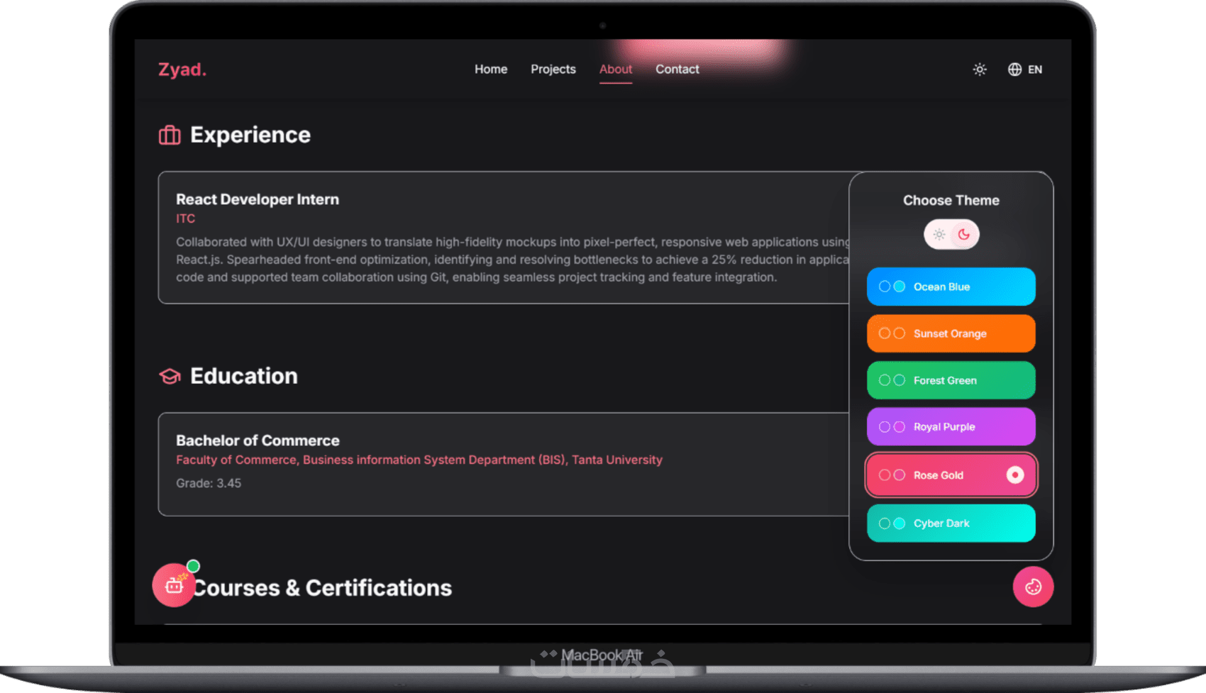 موقع احترافي: تصميم عصري وجذاب (Front-end) باستخدام React.js.