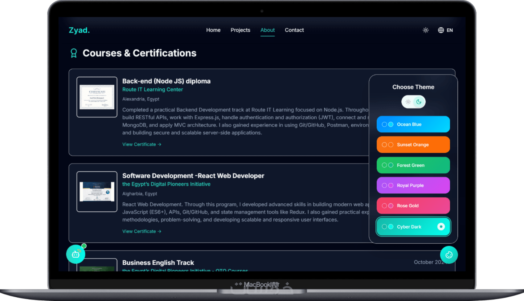 يُعد موقع السيرة الذاتية الشخصي (Personal Portfolio) بمثابة هويتك المهنية الرقمية، وهو مصمم خصيصاً لعرض قدراتك وإنجازاتك بشكل احترافي. إنه الأداة المثالية لترسيخ علامتك التجارية الشخصية وعرض محفظة أعمالك (مشاريعك) بطريقة جذابة.