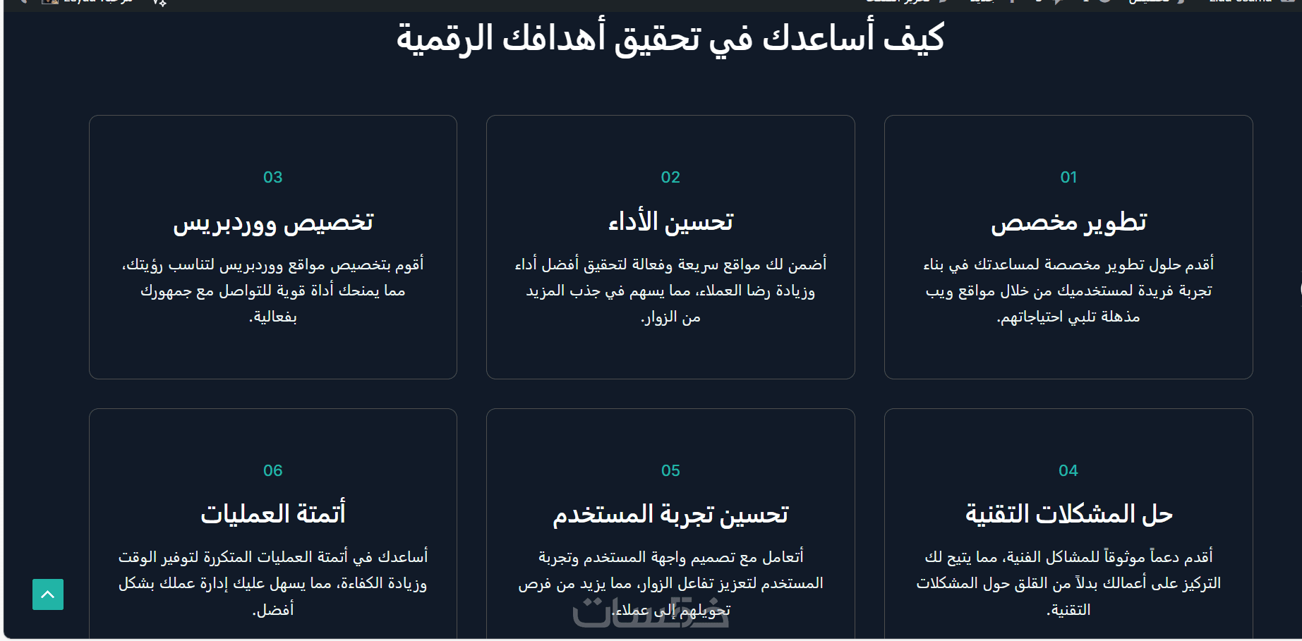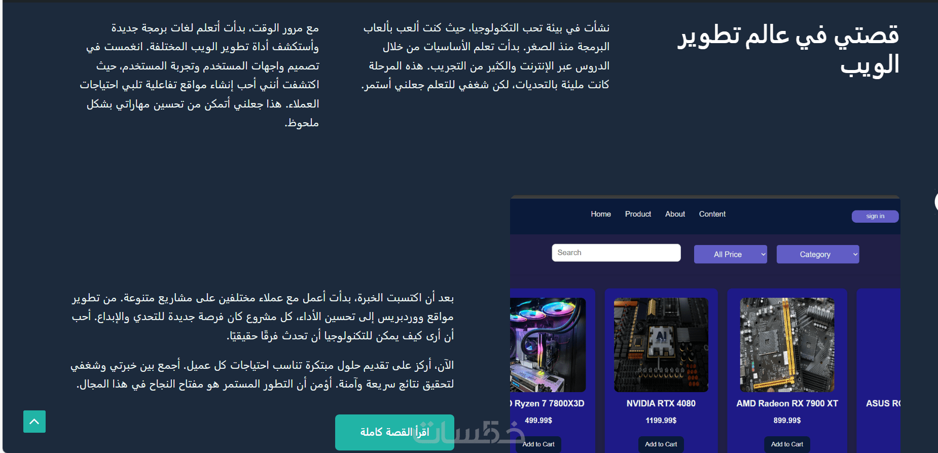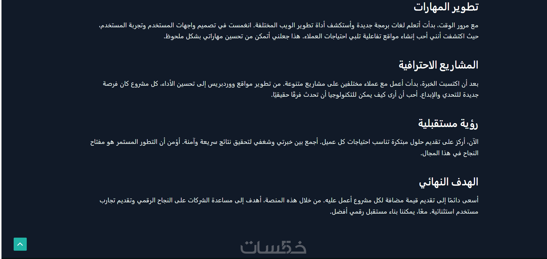 واجهة مستخدم سلسة وواضحة تتيح للزائر الوصول لكل مشروع أو مهارة بسرعة.