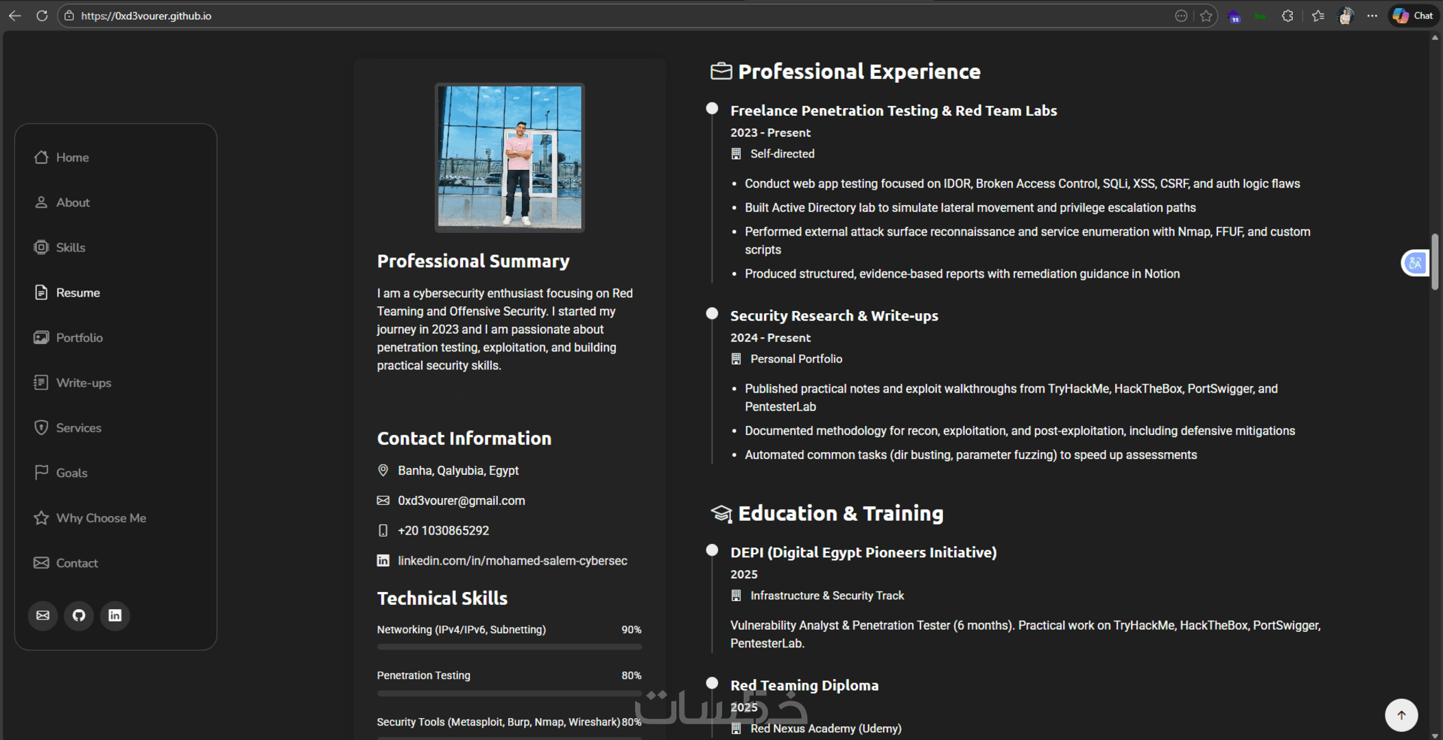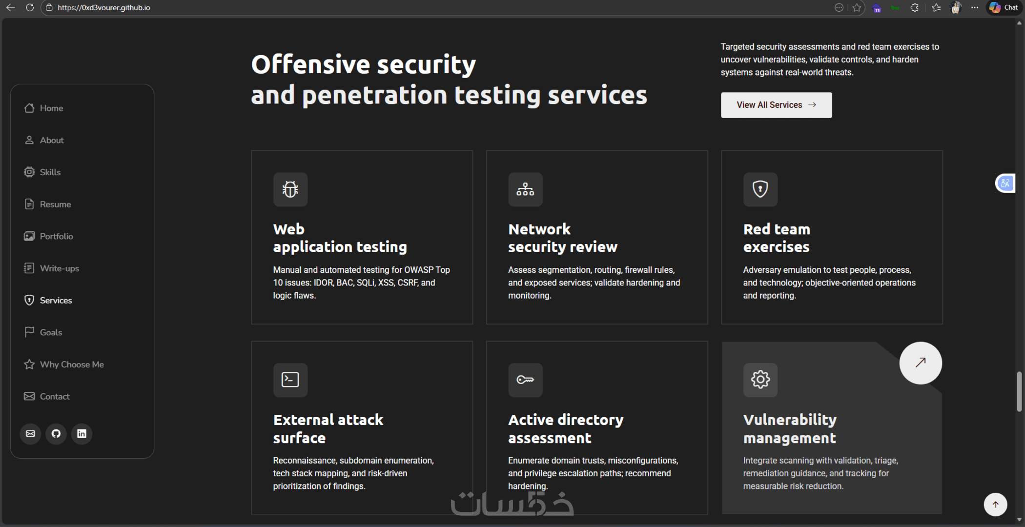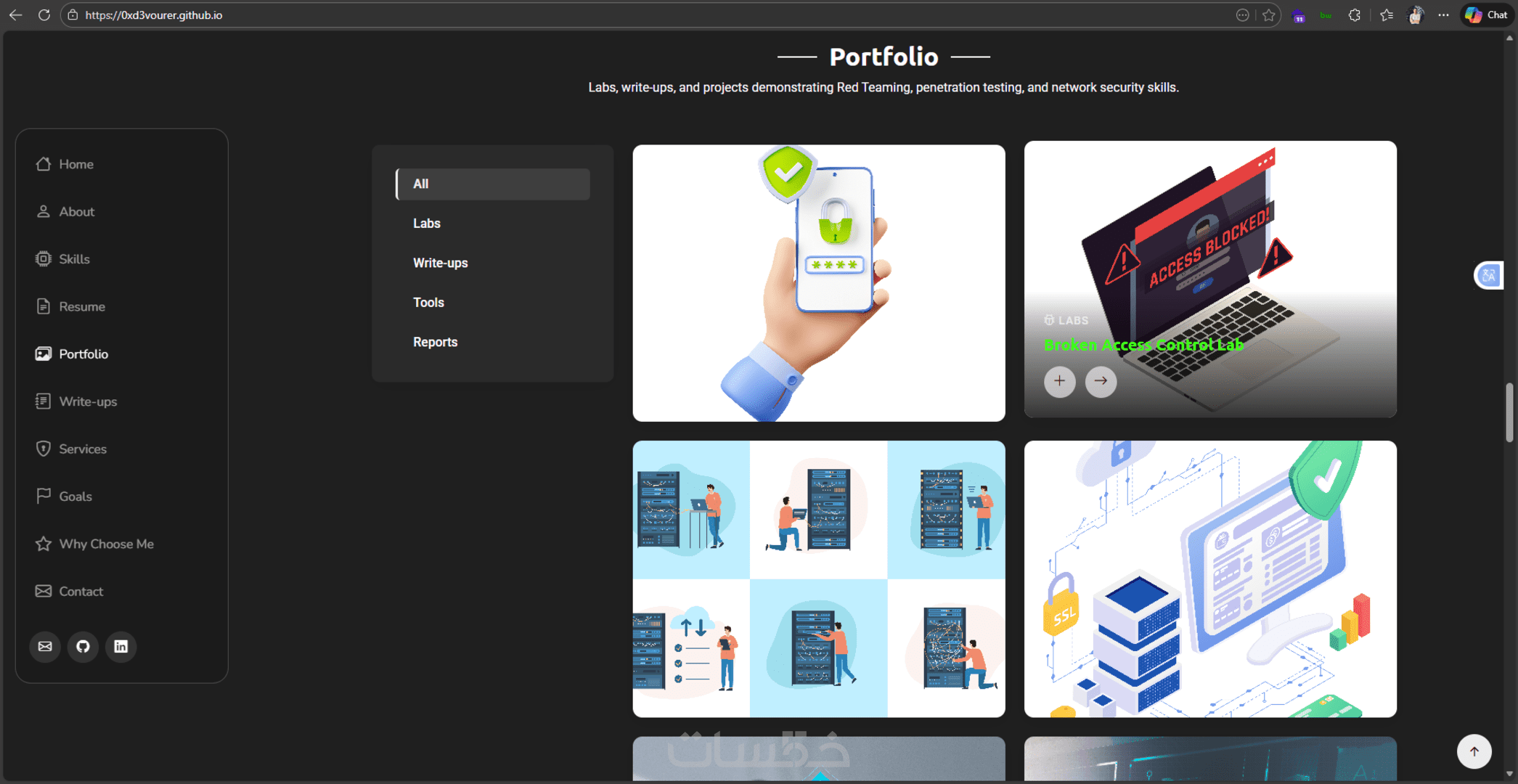 أقدّم لك خدمة إنشاء موقع بورتفوليو احترافي ومتجاوب يساعدك على عرض مهاراتك وأعمالك بشكل منظم وجذاب، سواء كنت مبرمج، مصمم، فريلانسر أو طالب.