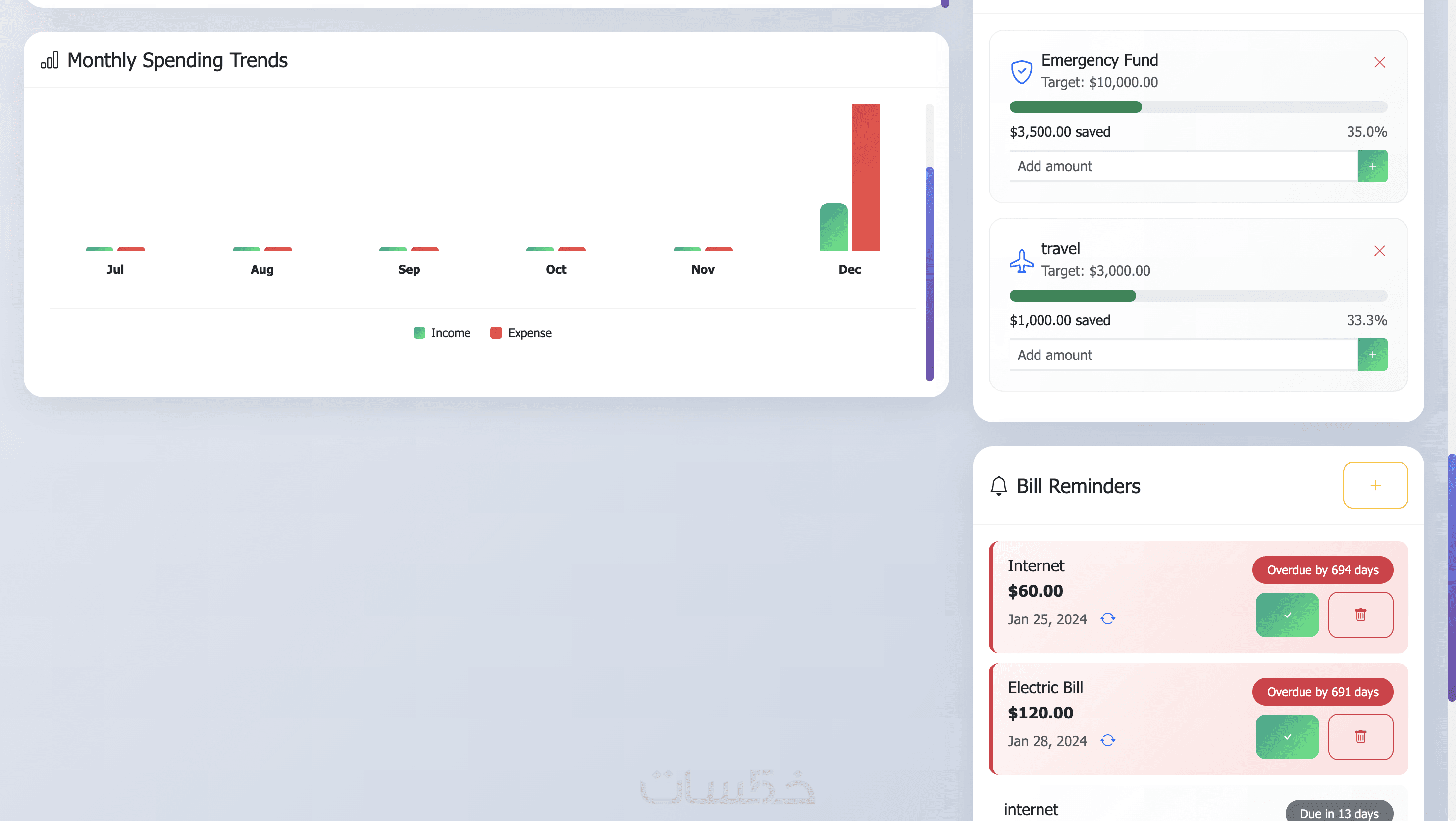 - إضافة دخل ومصروفات