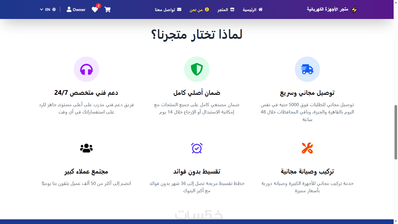 - خبرة في بناء متاجر كاملة من الصفر (شوف نموذجي اللي بنيته للأجهزة الكهربائية كدليل).