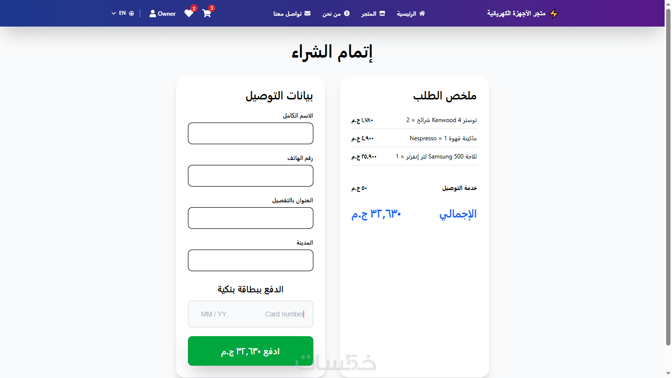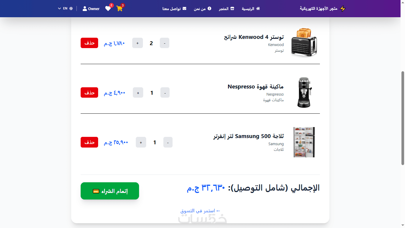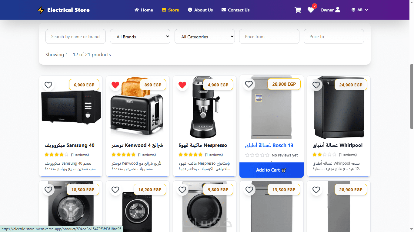 أنا متخصص في تطوير Full Stack بتقنية MERN Stack (MongoDB + Express + React + Node.js)، وبنيت متجر إلكتروني كامل متكامل لبيع الأجهزة الكهربائية (يمكنك تخصيصه لأي نوع منتجات: ملابس، إلكترونيات، مستحضرات تجميل، كتب، أو أي شيء!).