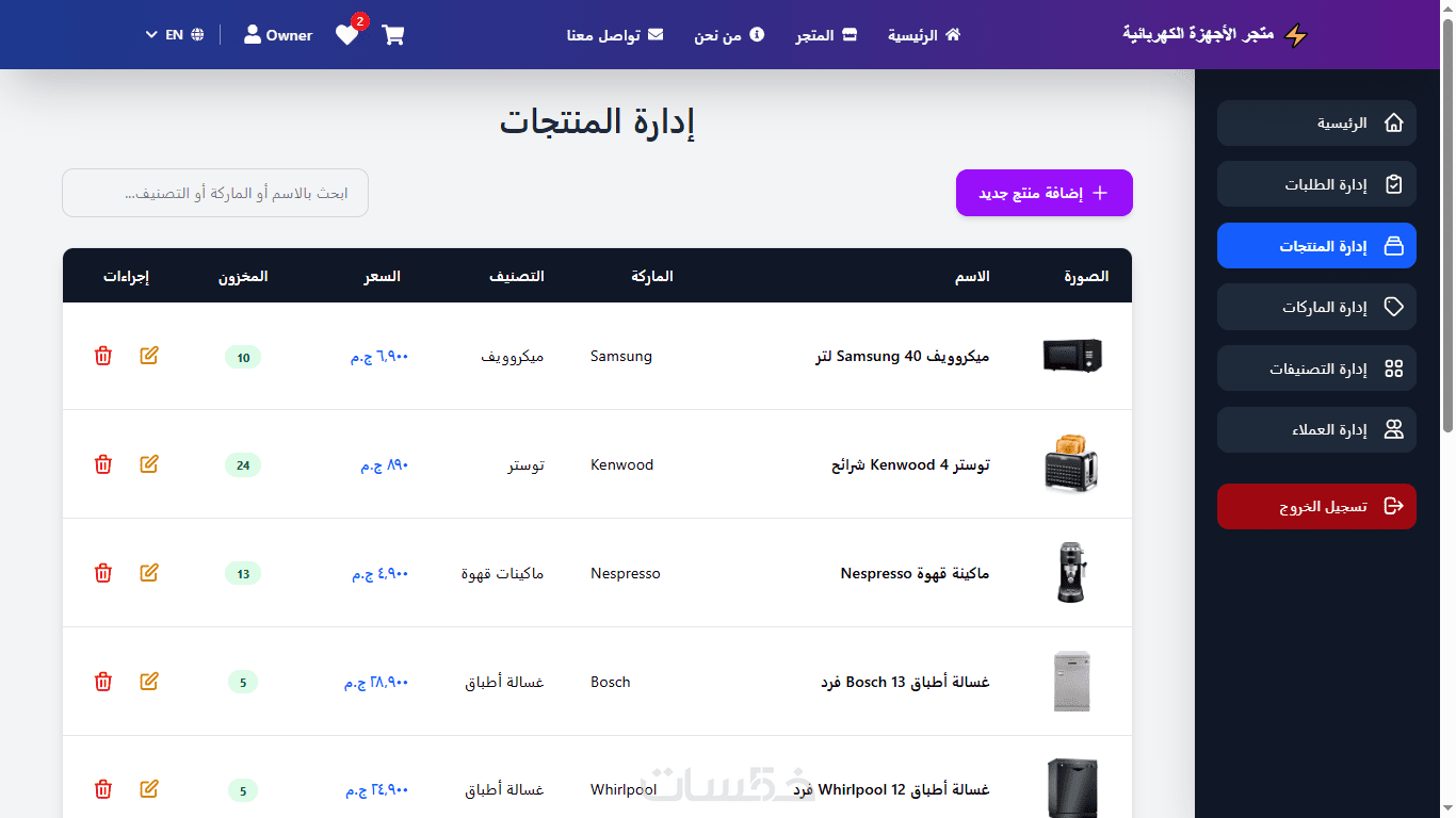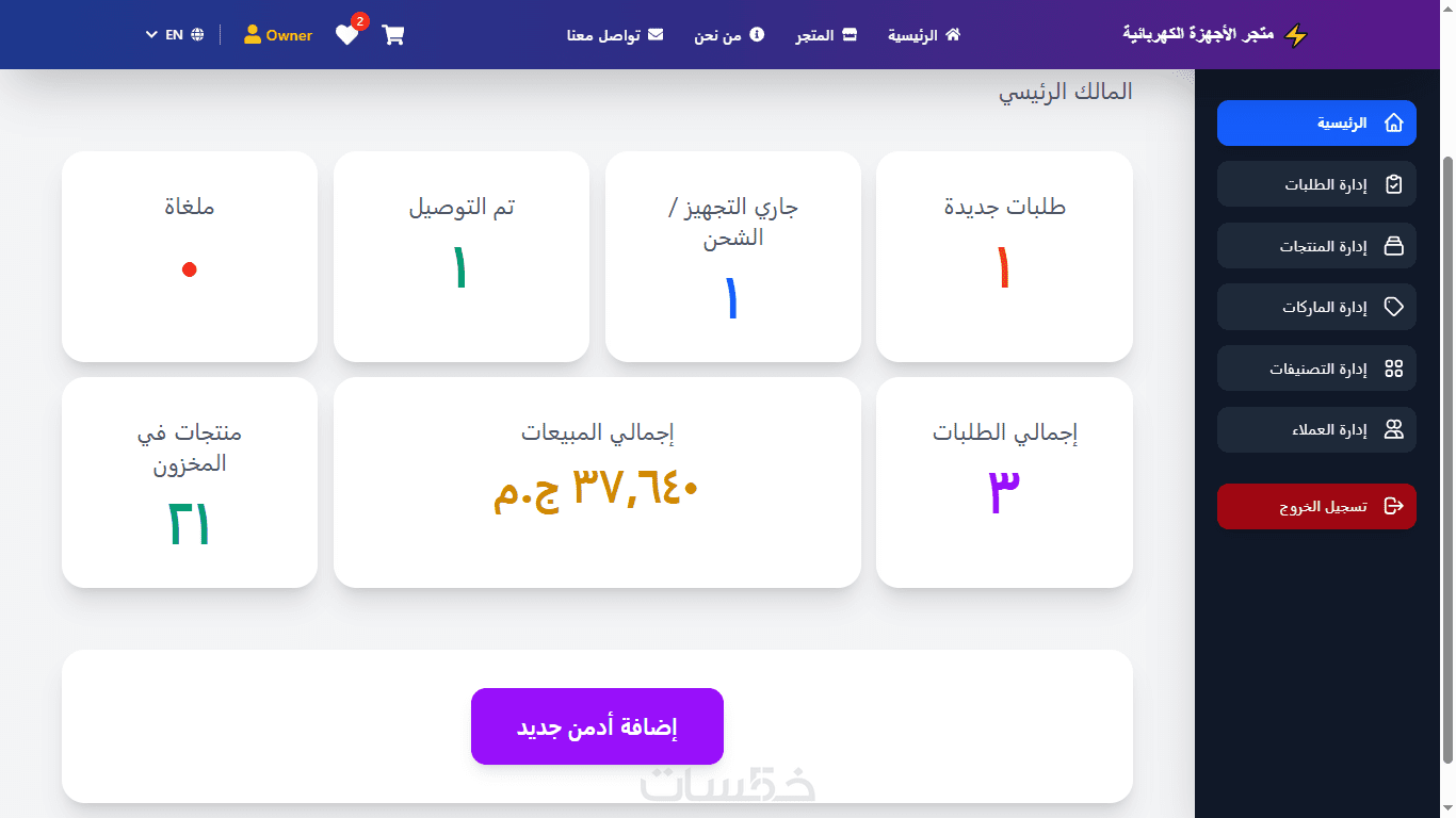لوحة تحكم متكاملة لإدارة المنتجات و المستخدمين والطلبات مع صلاحيات Owner , Admin