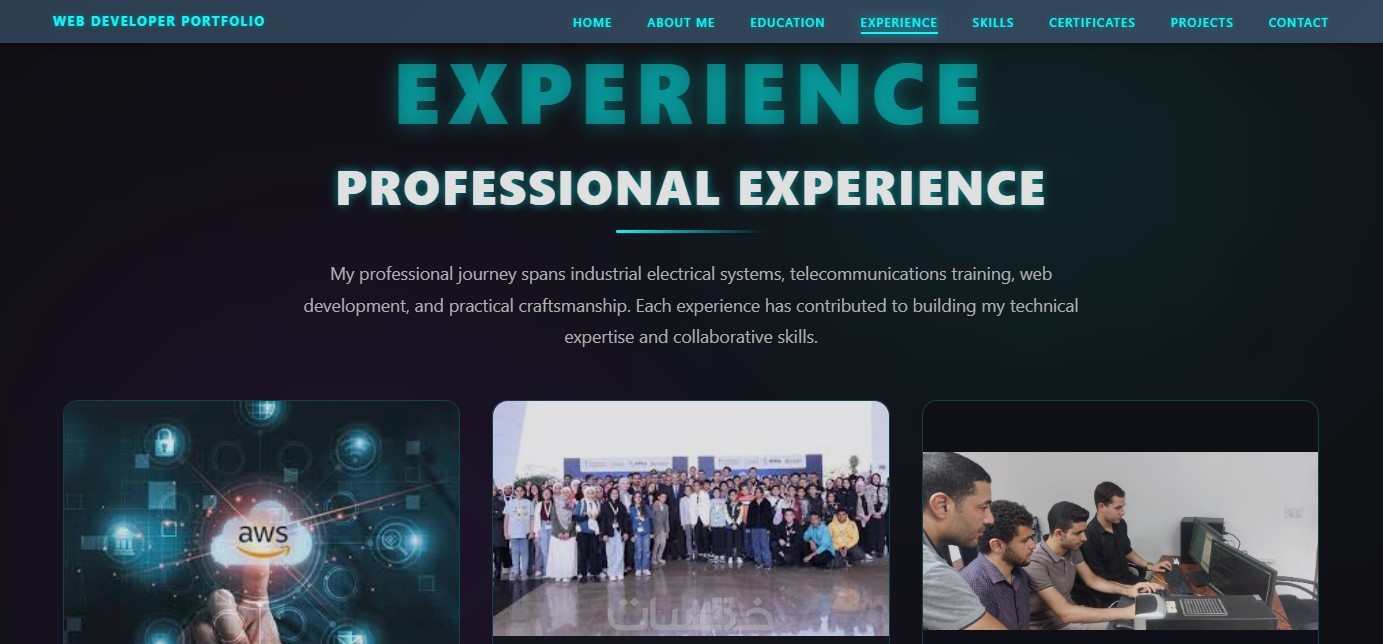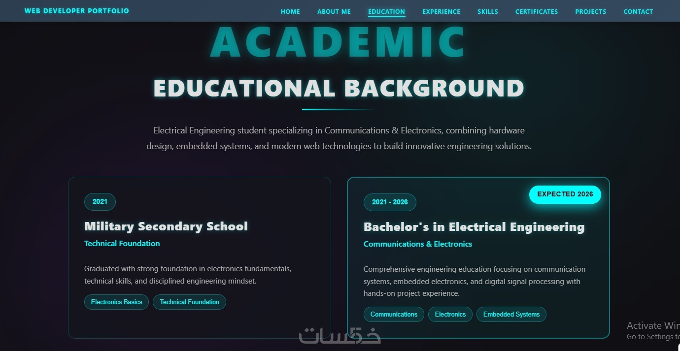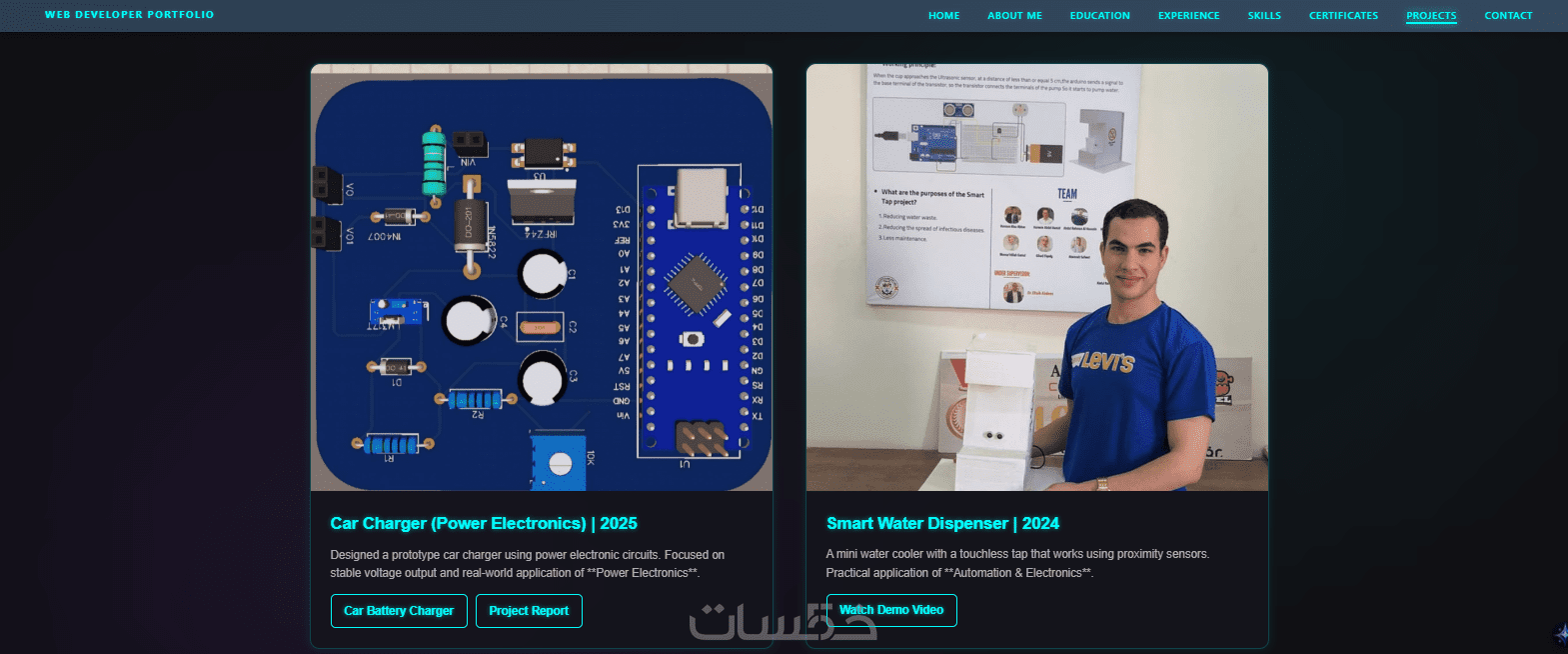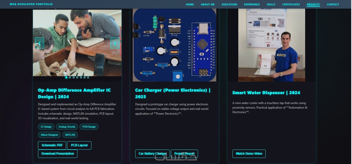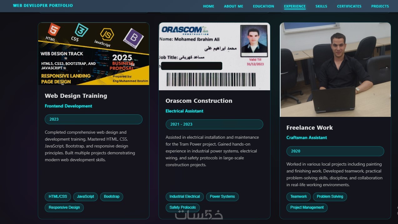 أقدّم لك خدمة تصميم وإنشاء موقع بورتفوليو شخصي احترافي ومتجاوب يساعدك على إبراز خبراتك ومشاريعك بطريقة تعكس احترافيتك وتترك انطباعًا قويًا لدى العملاء أو أصحاب الشركات.