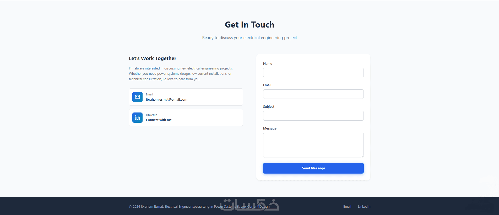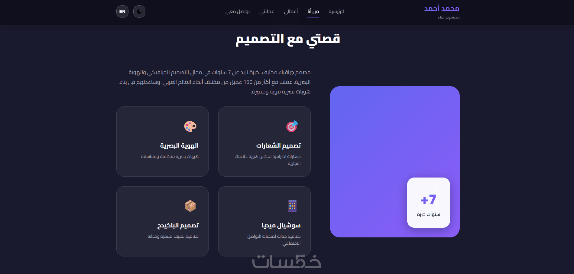 أقسام رئيسية شاملة: (الرئيسية - نبذة عني - معرض الأعمال - خدماتي - آراء العملاء - اتصل بي).
