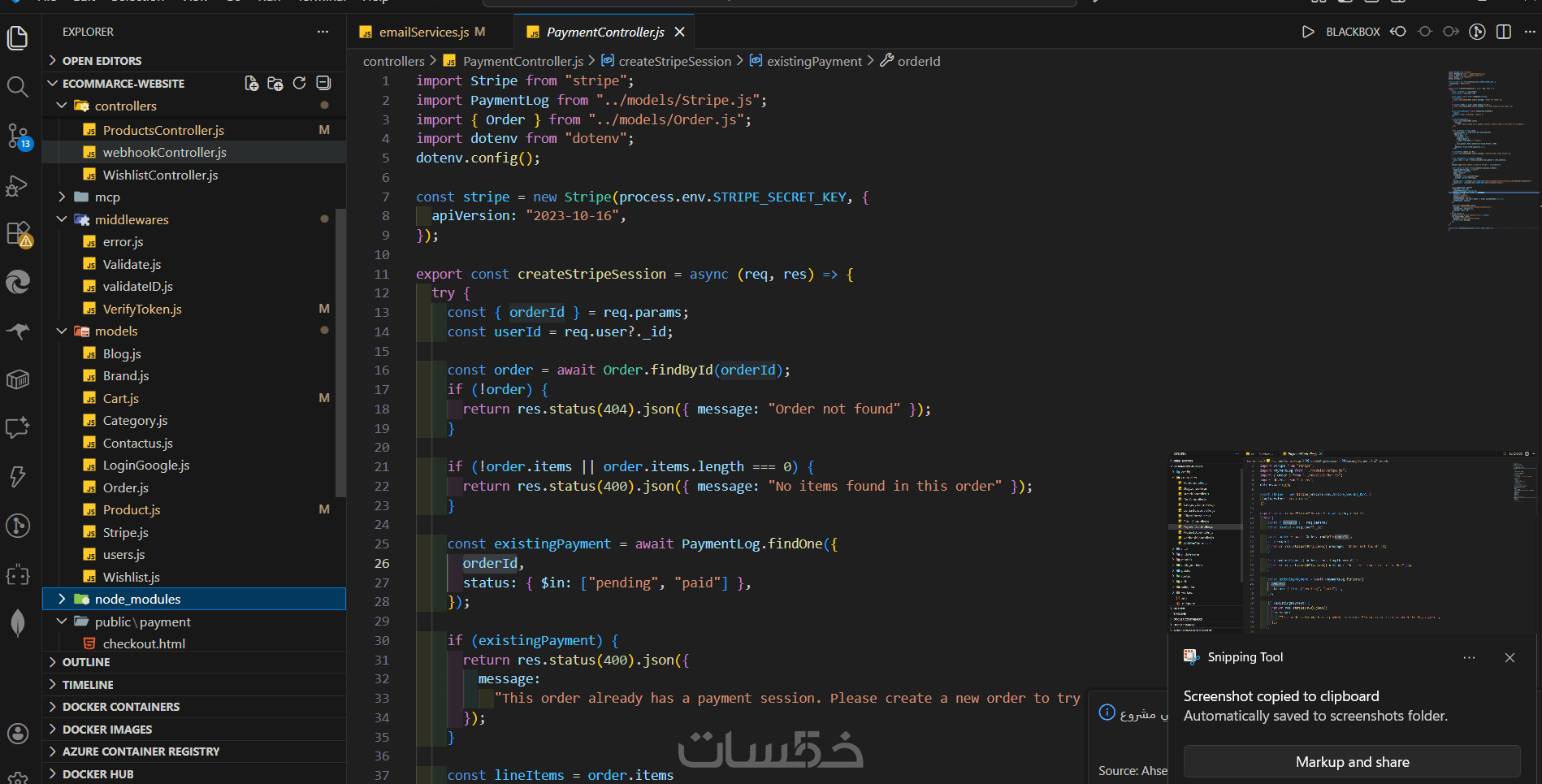 حجم الخدمة: 10–50 ملف JS/TS، 20–50 صفحة توثيق Postman/Swagger، 1–2 ملف إعدادات البيئة.