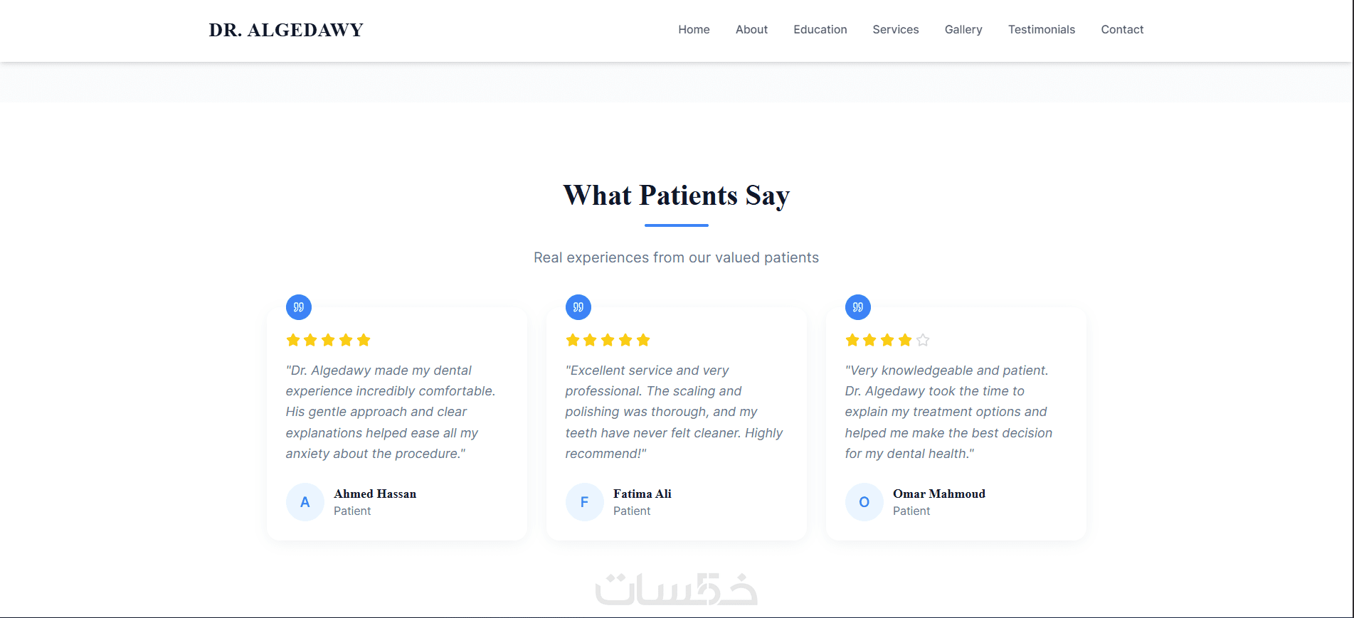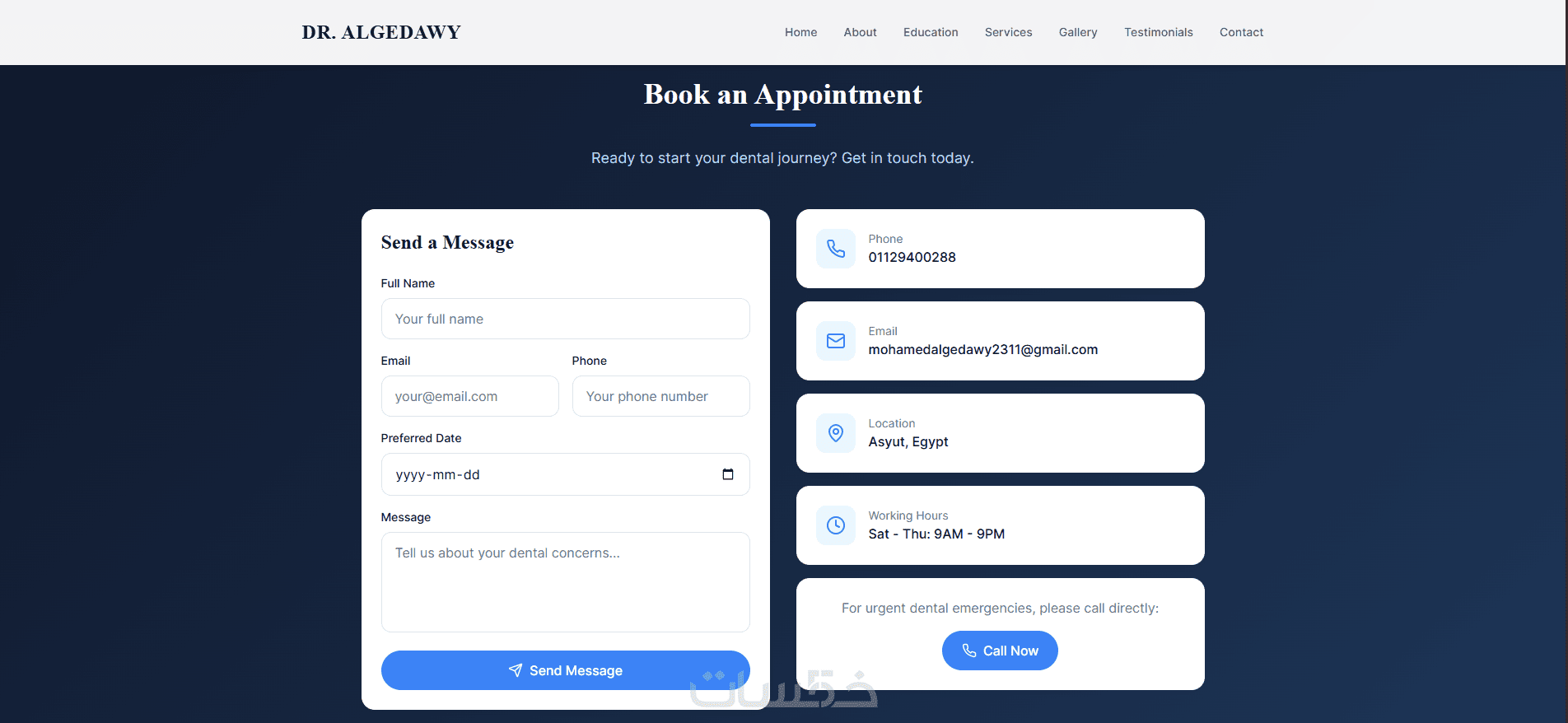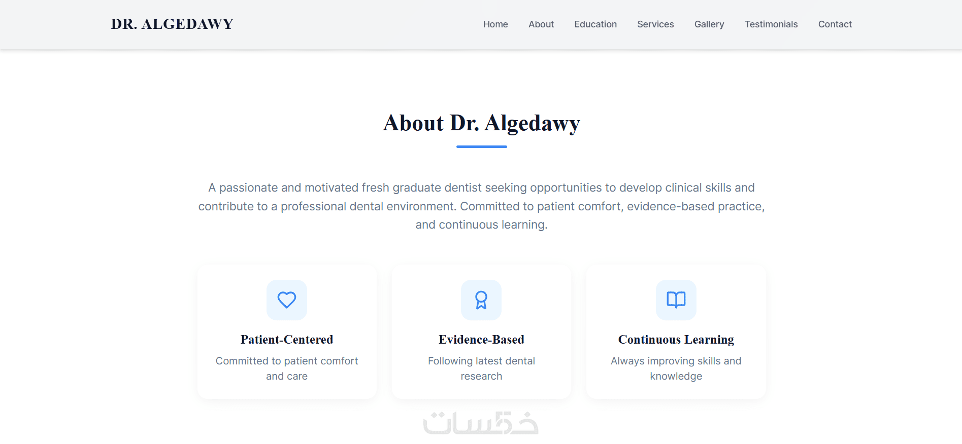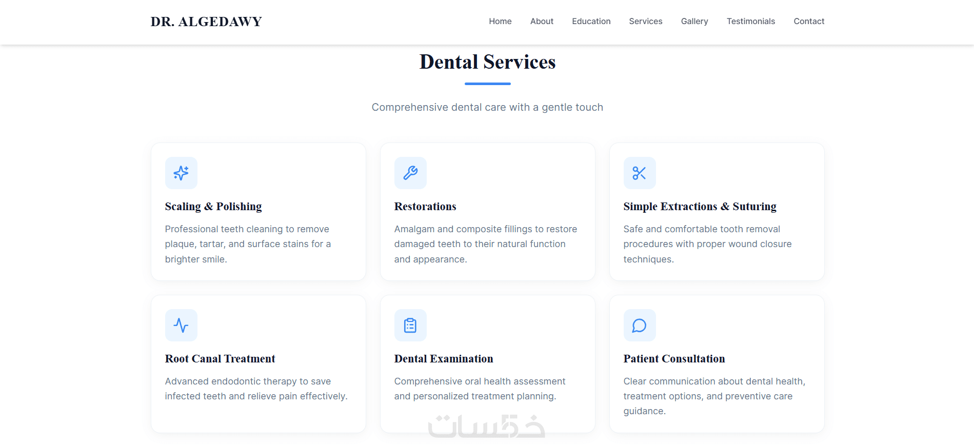أقدّم لك خدمة تصميم وتطوير موقع تعريفي احترافي لعيادة أسنان يعكس صورة راقية وموثوقة للطبيب، ويساعدك على جذب مرضى جدد وبناء حضور قوي على الإنترنت.
