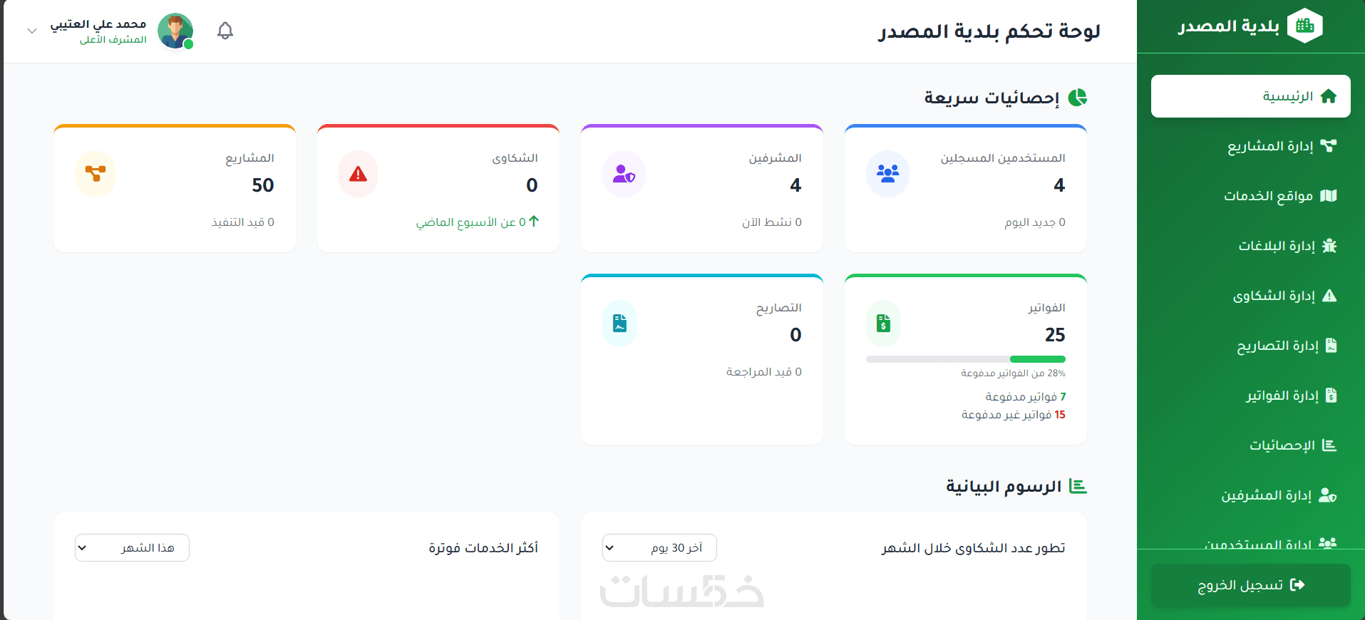 إحصائيات وتقارير ذكية مدعومة بالرسوم البيانية (Charts).