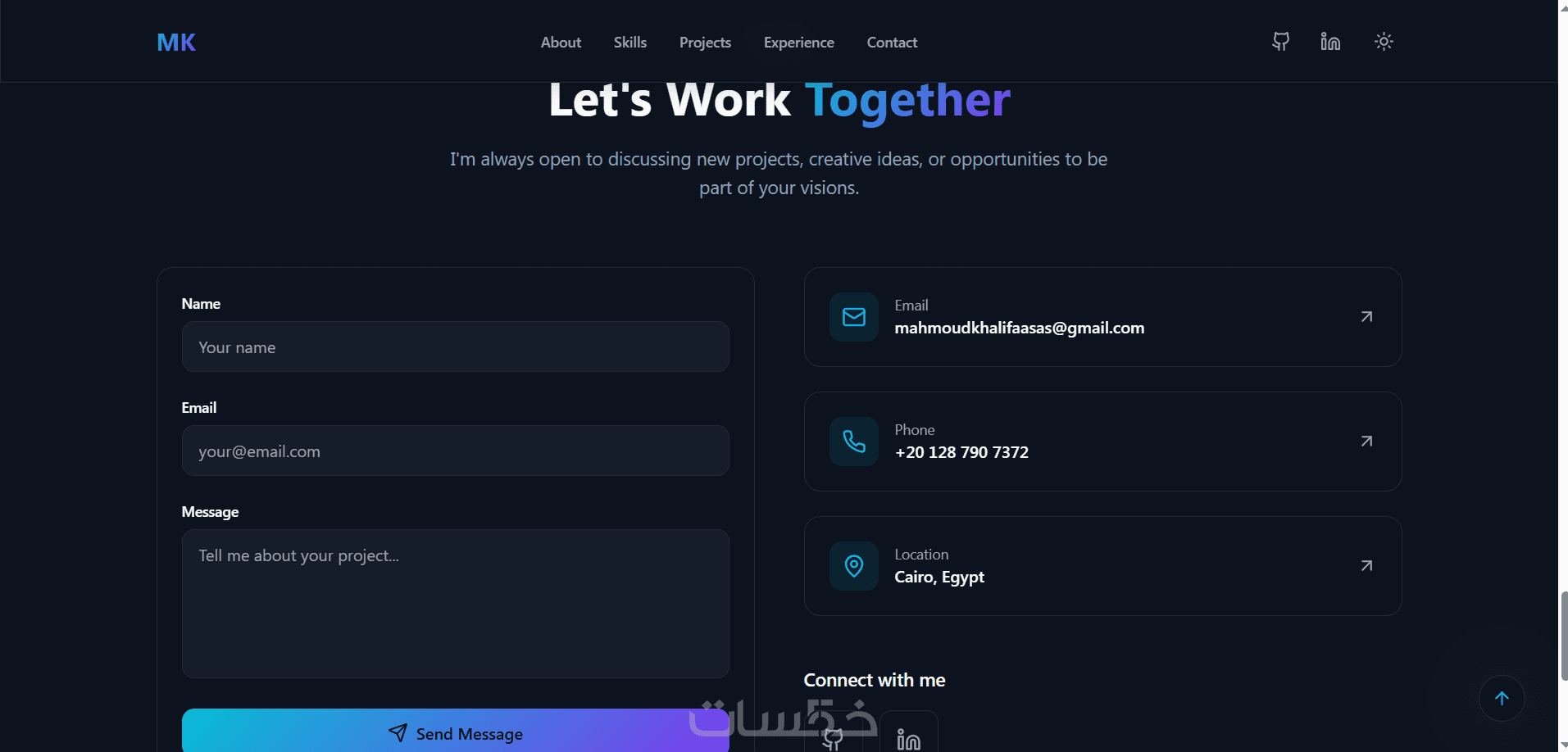 قسم تواصل (نموذج تواصل / روابط سوشيال ميديا)