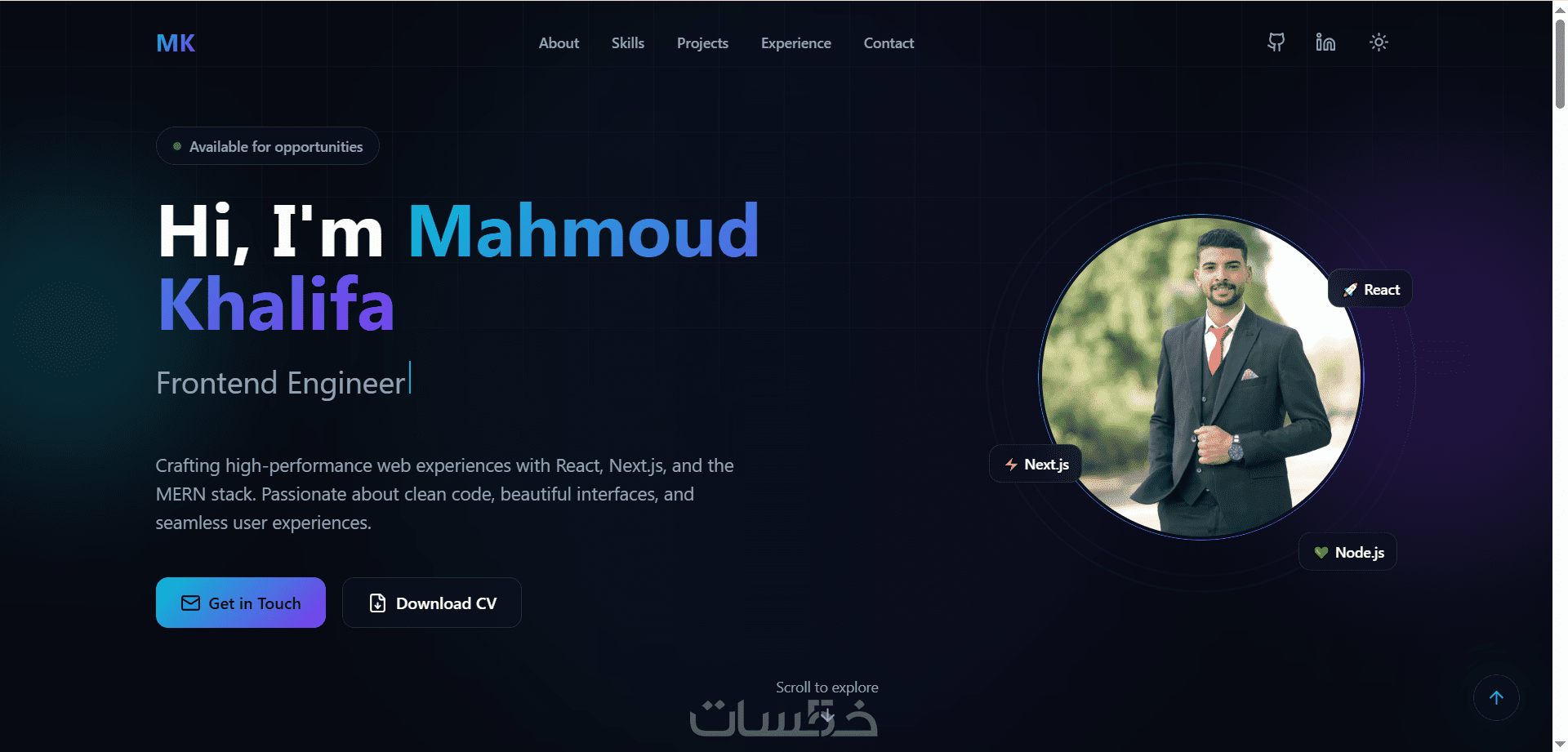 موقع شخصي مناسب لكل الشاشات بتصميم جذاب