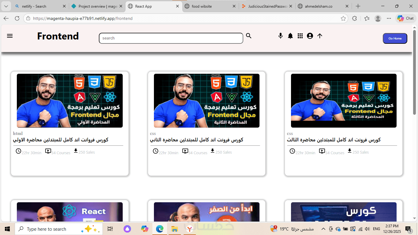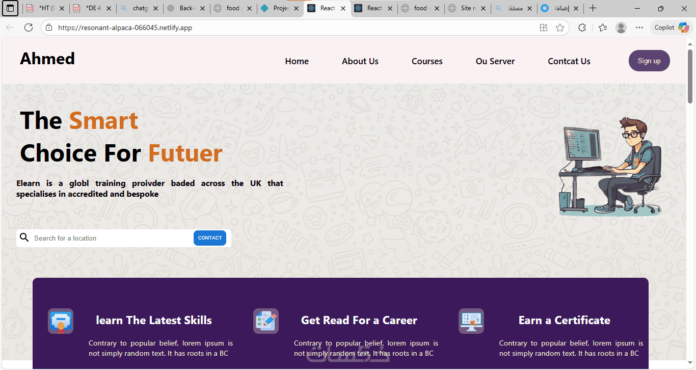 أنا أقدّم خدمة تطوير مواقع Full Stack متكاملة تشمل كل ما يحتاجه مشروعك ليكون جاهزًا للعمل بكفاءة عالية.