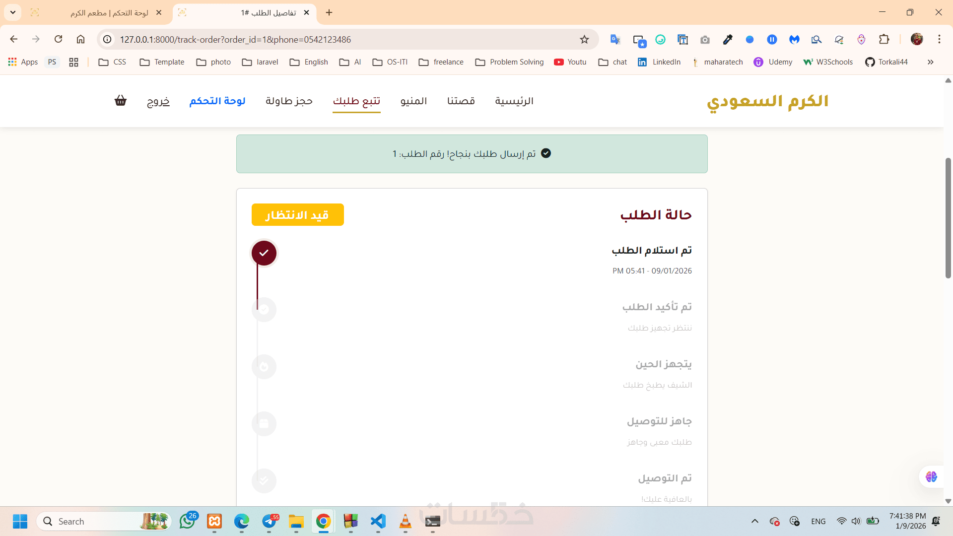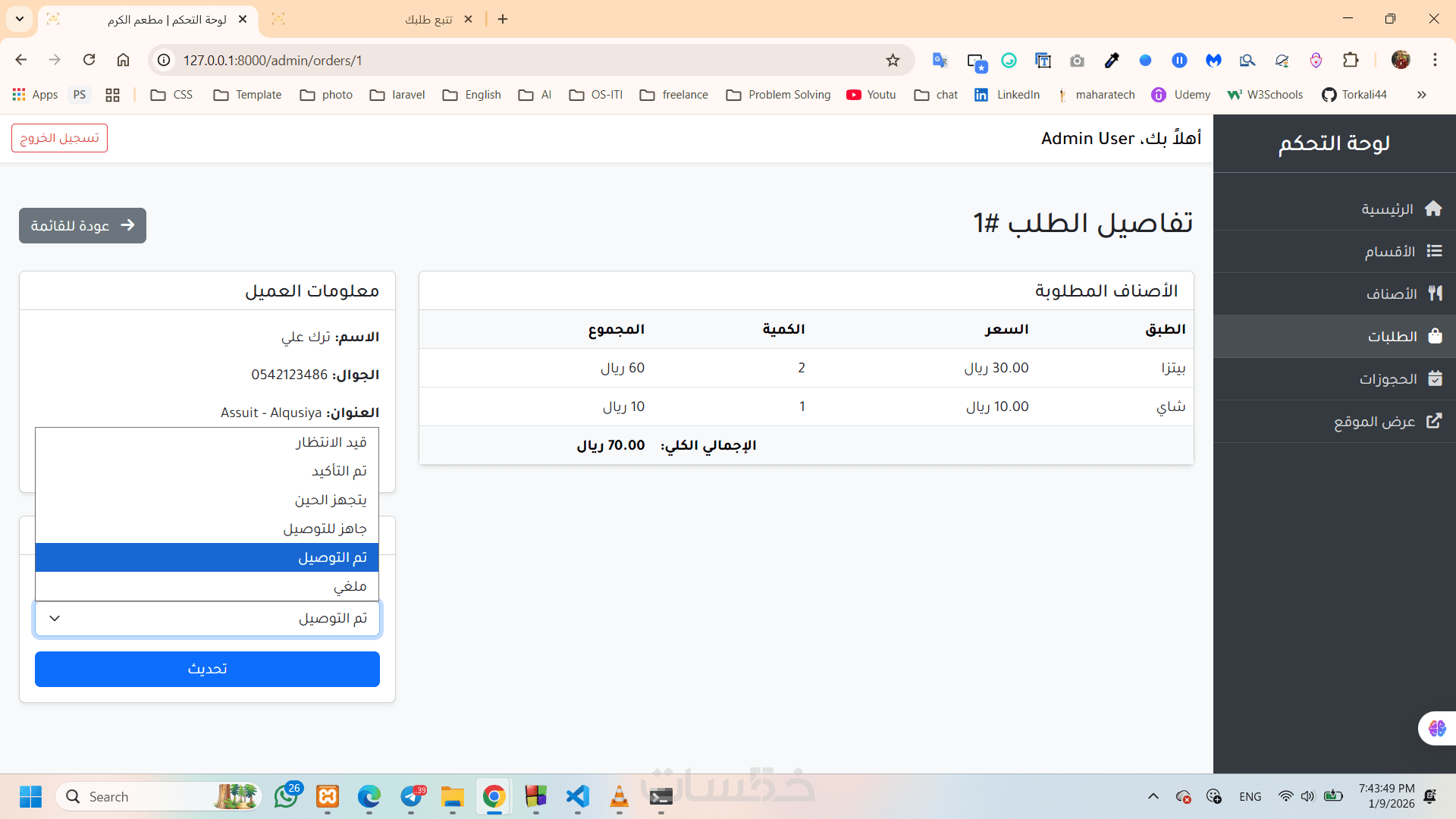 متابعة الطلبات وتغيير حالتها (قيد التحضير – جاهز – تم التسليم)