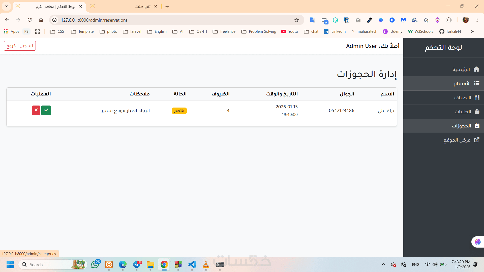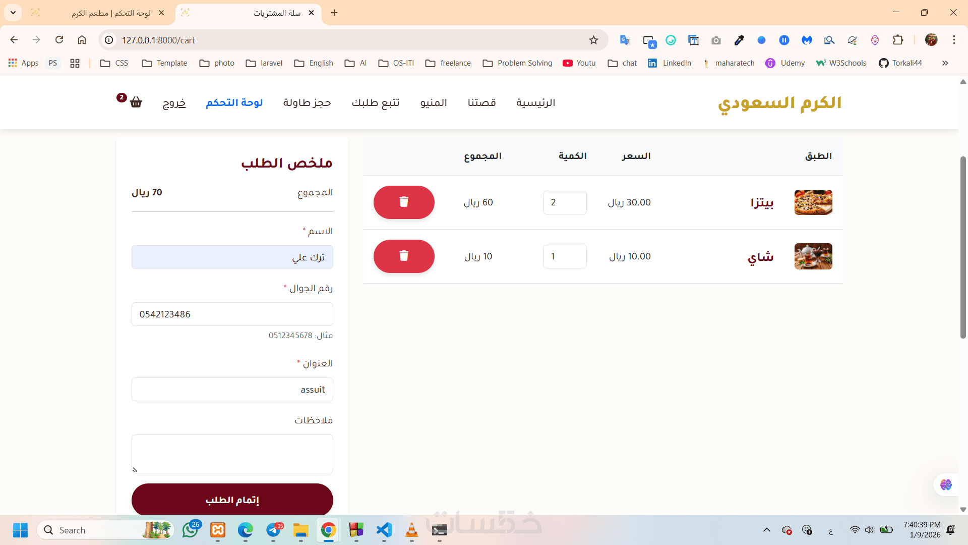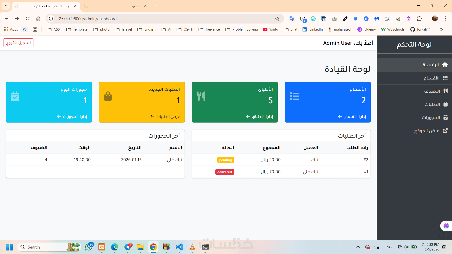 بعد شراء الخدمة، ستحصل على نظام ويب كامل لإدارة المطعم، يحتوي على: