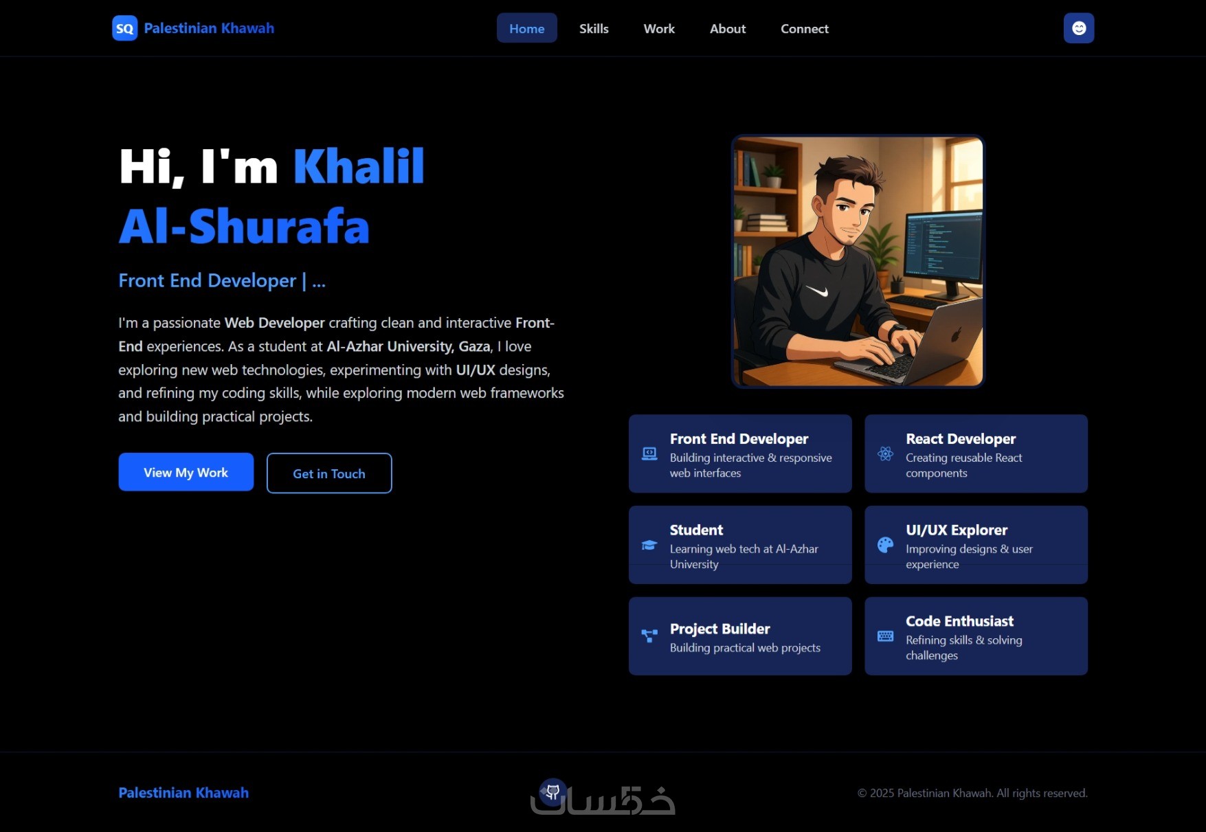 أنا مطوّر واجهات أمامية (Front-End Developer)، أقدّم لك تطوير واجهة React.js بشكل مرتب ومتجاوب وسهل التعديل و بمكونات قابلة ل اعادة الاستخدام واستخدام مكتبات مثل (Tailwind CSS , MUI)