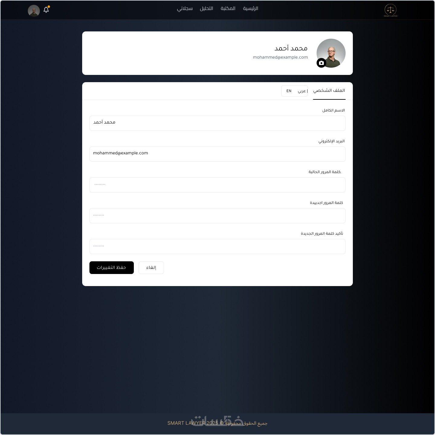 تصميم متجاوب مع جميع الشاشات (Desktop – Tablet – Mobile)