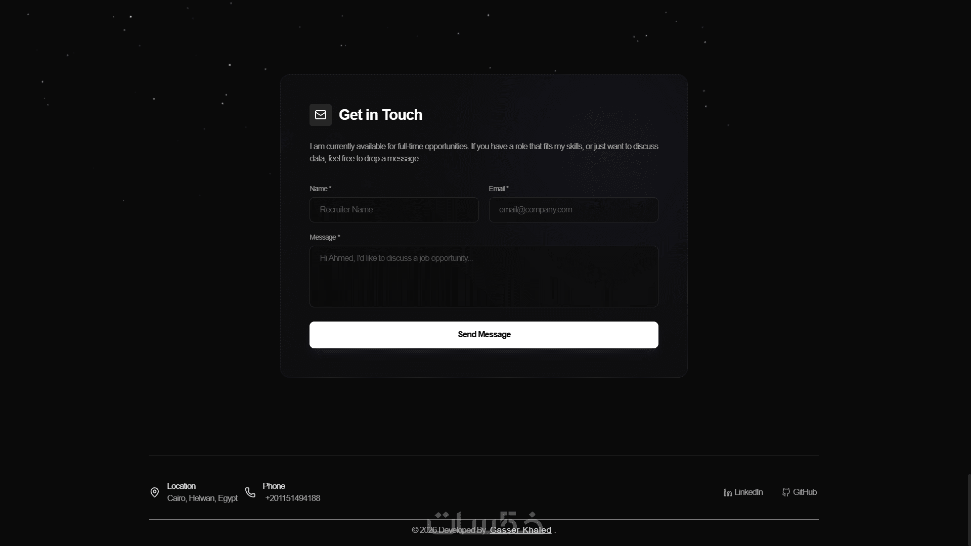 قسم Hero ترحيبي لعرض اسمك و المسمى الوظيفى الخاص بك.