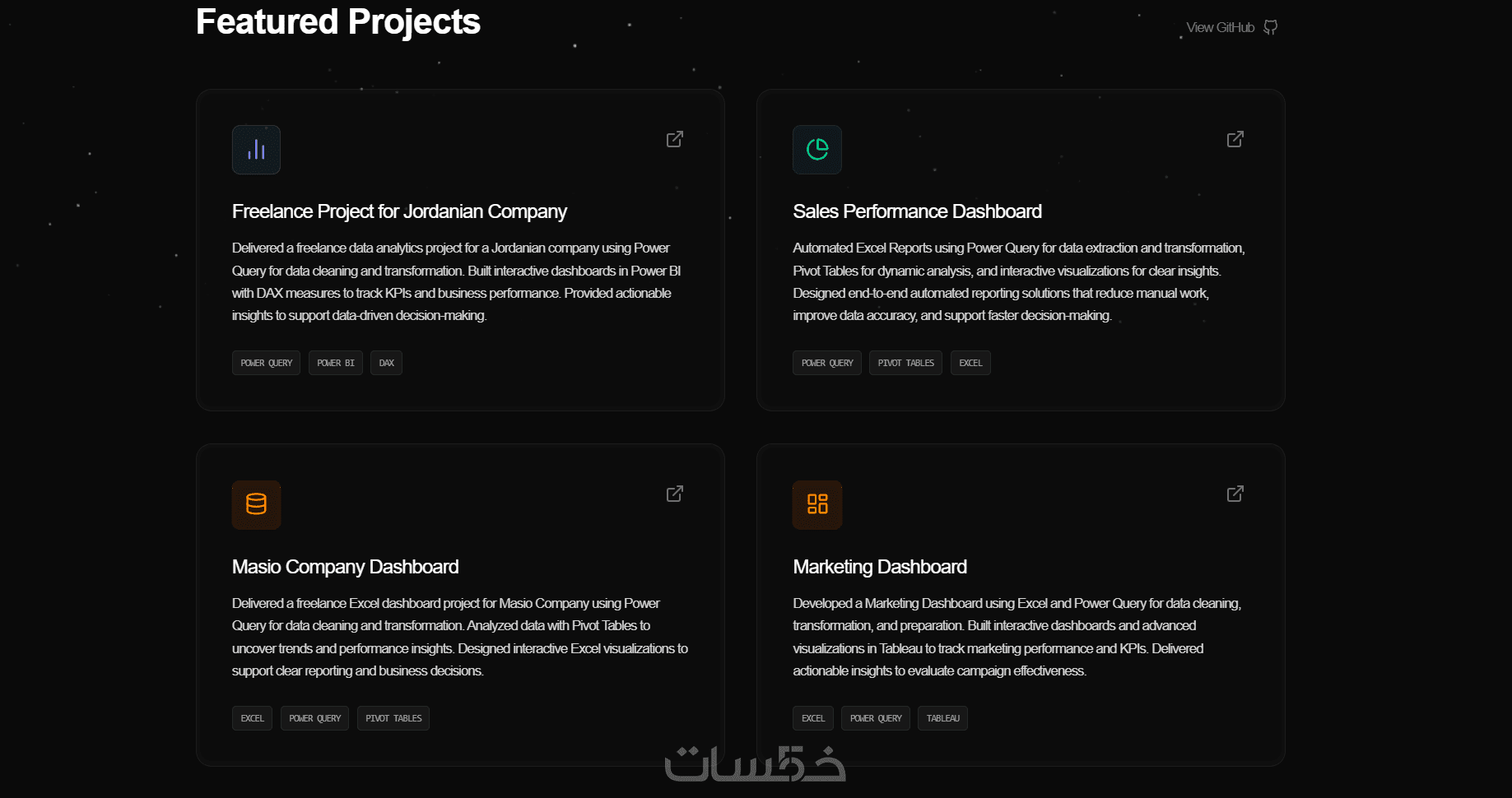 قسم Portfolio Projects لعرض مشاريعك بشكل احترافى.