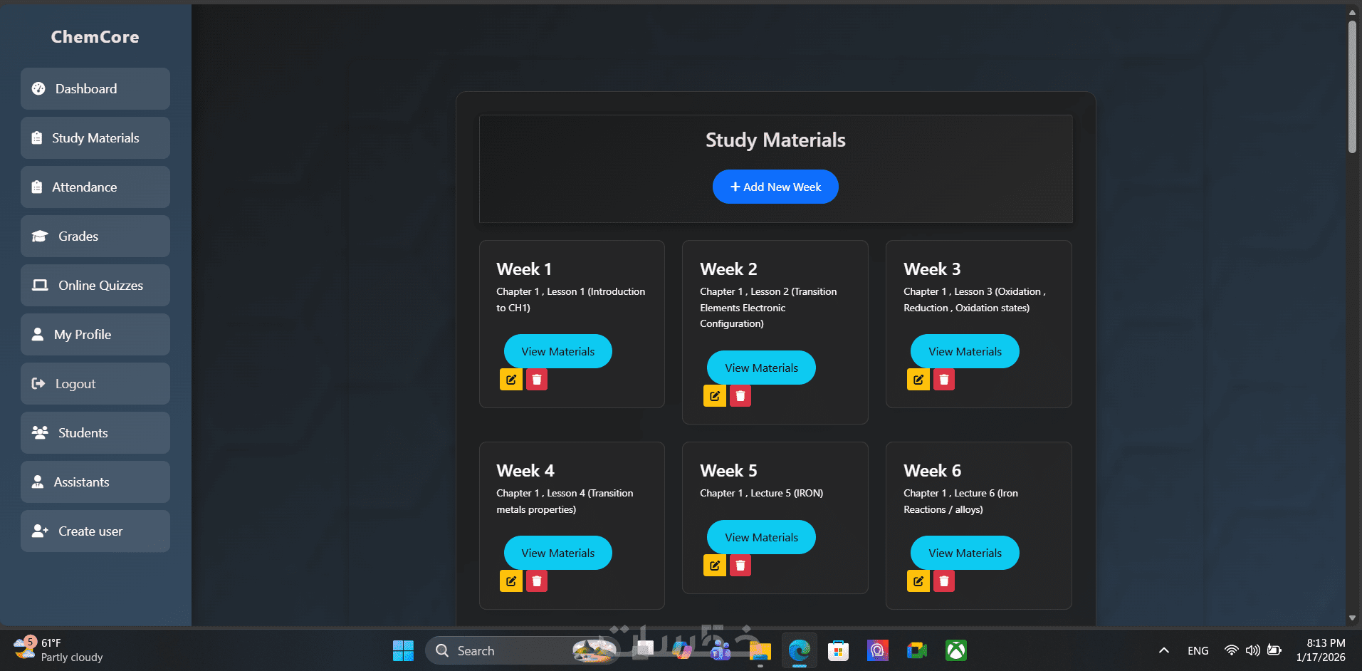 ChemCore هو نظام إدارة تعلم تم تطويره لمعلّم واحد، يتيح له: