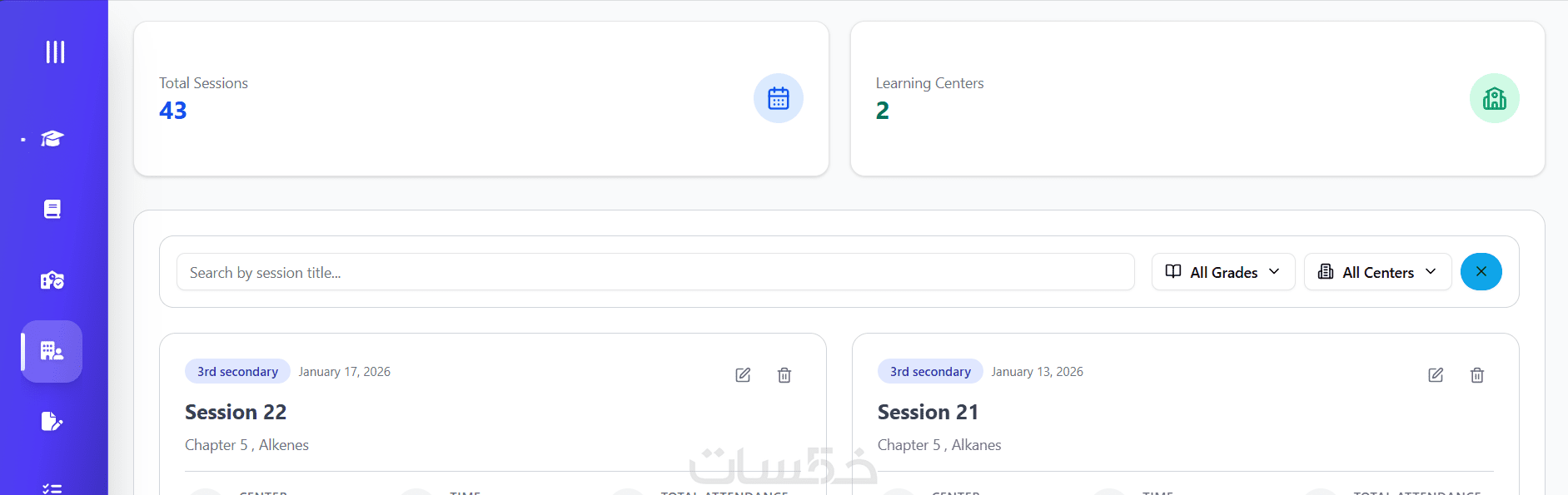 تتبّع الحصص (Session Tracking) وتسجيل درجات الاختبارات