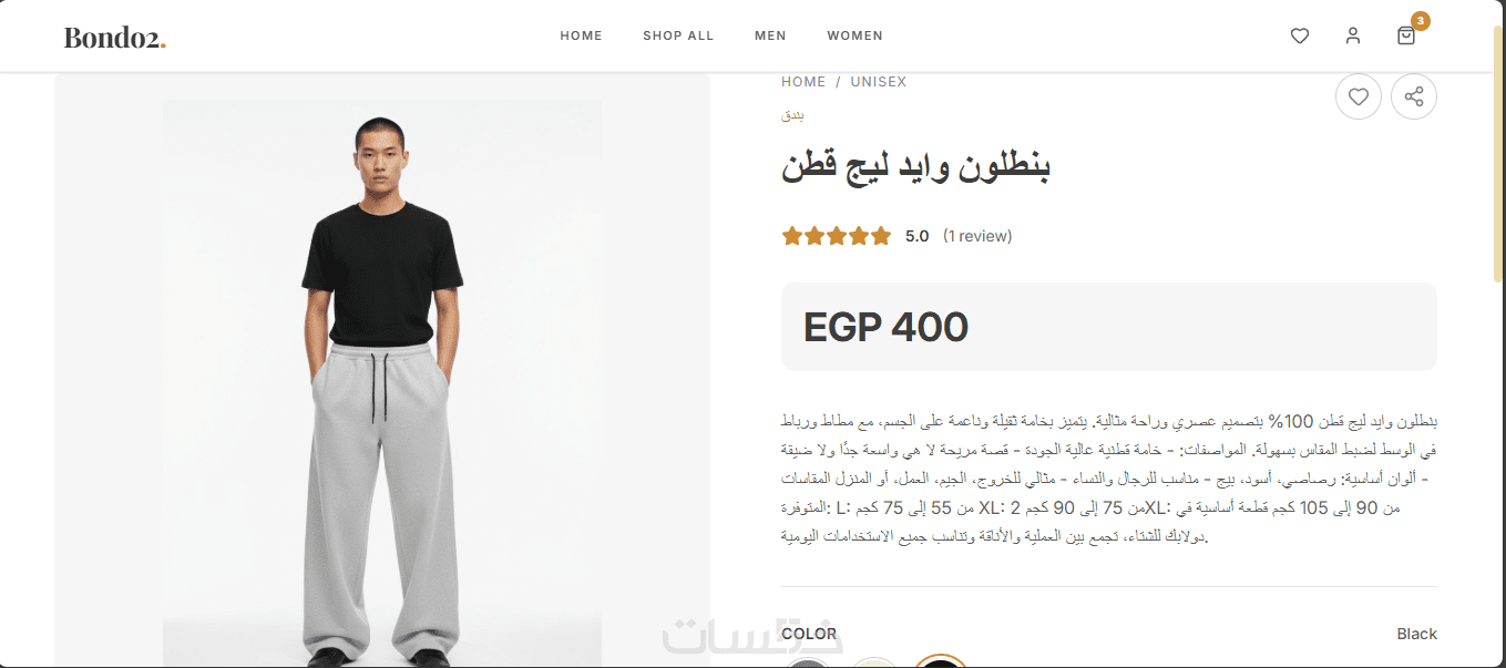 صفحة تفاصيل المنتج: عرض الصور، الوصف، والسعر.