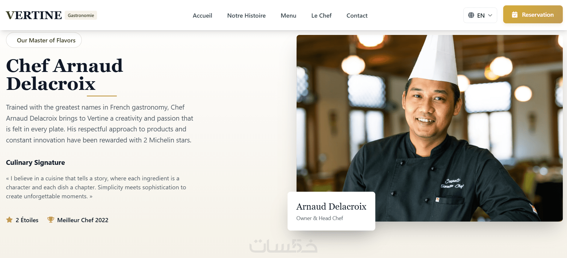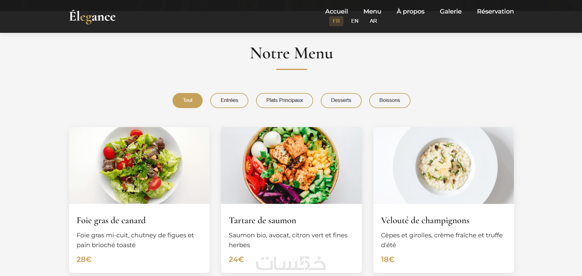 تصميم وتطوير موقع إلكتروني احترافي لمطعم فاخر بواجهة حديثة وأنيقة تعكس هوية المطعم، مع تجربة مستخدم سلسة ومتجاوبة مع جميع الأجهزة.