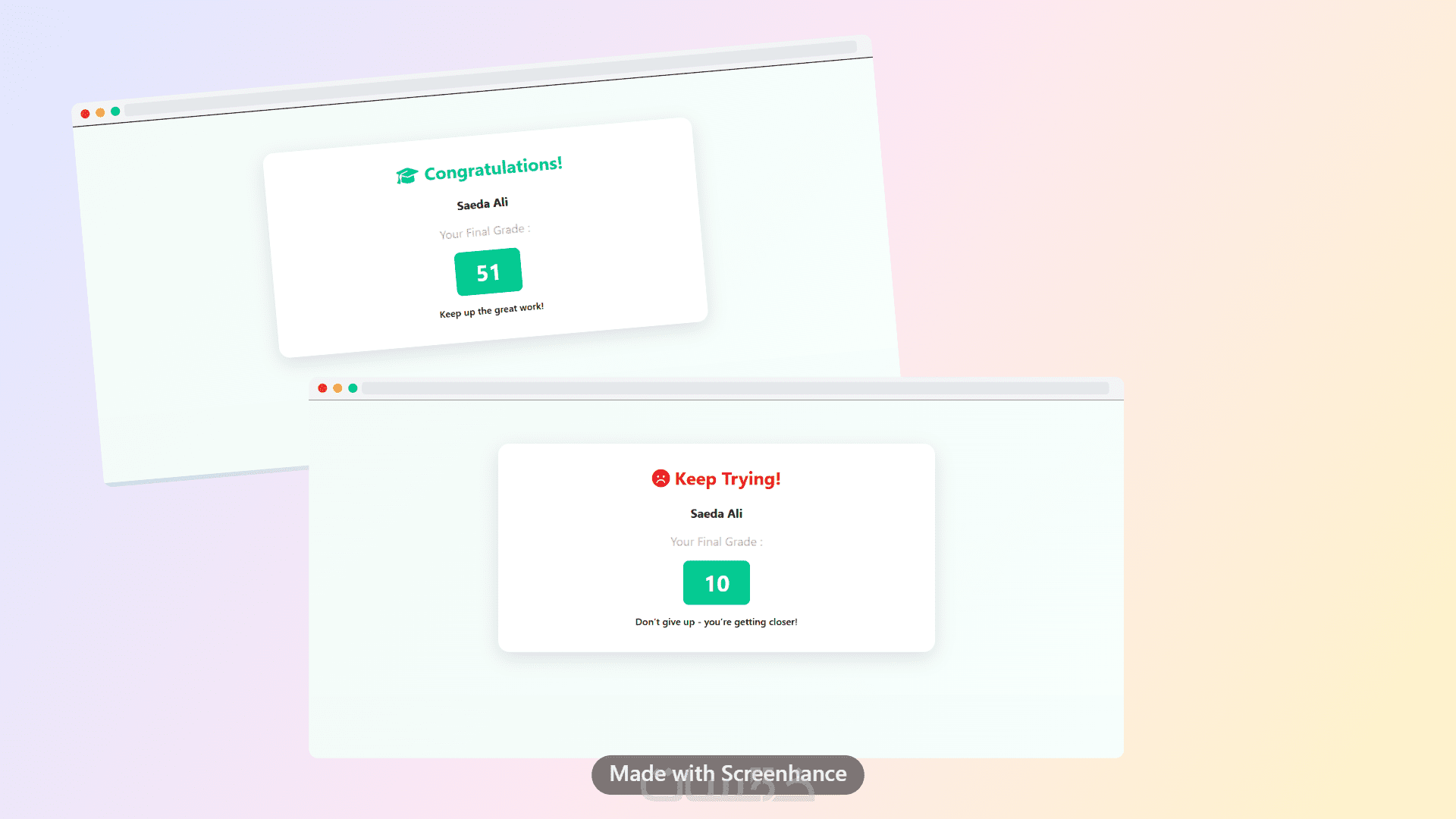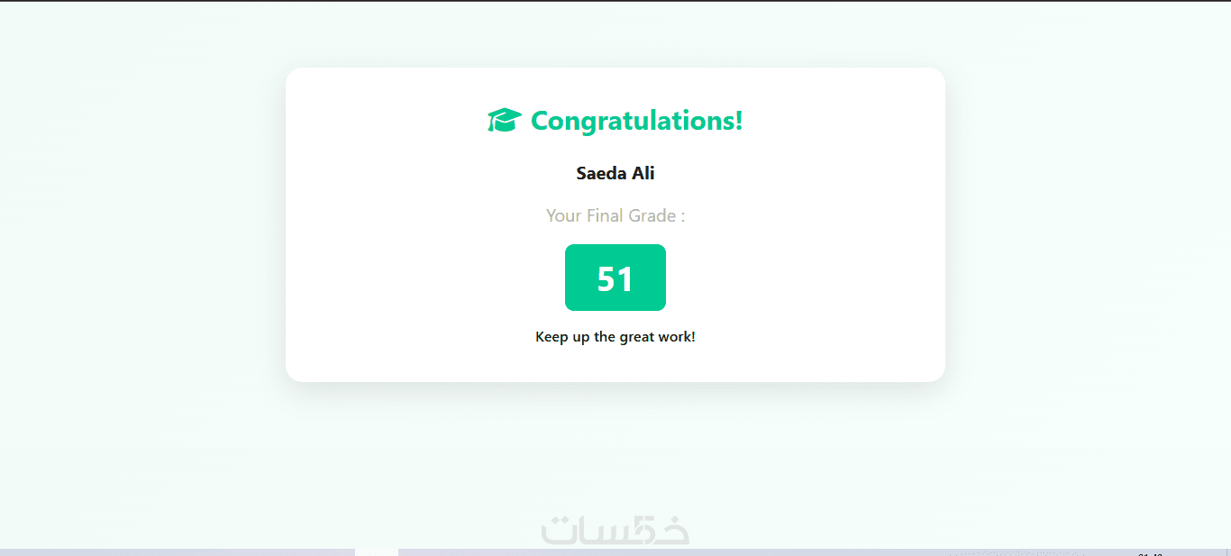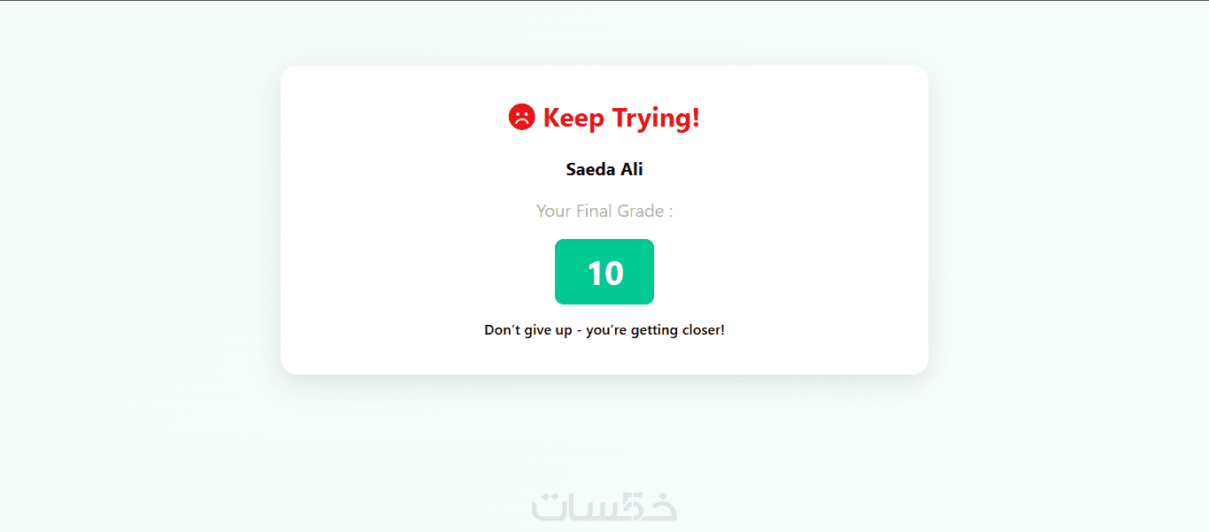 يتم حساب نتيجة المستخدم وعرضها مباشرة بعد انتهاء الاختبار.