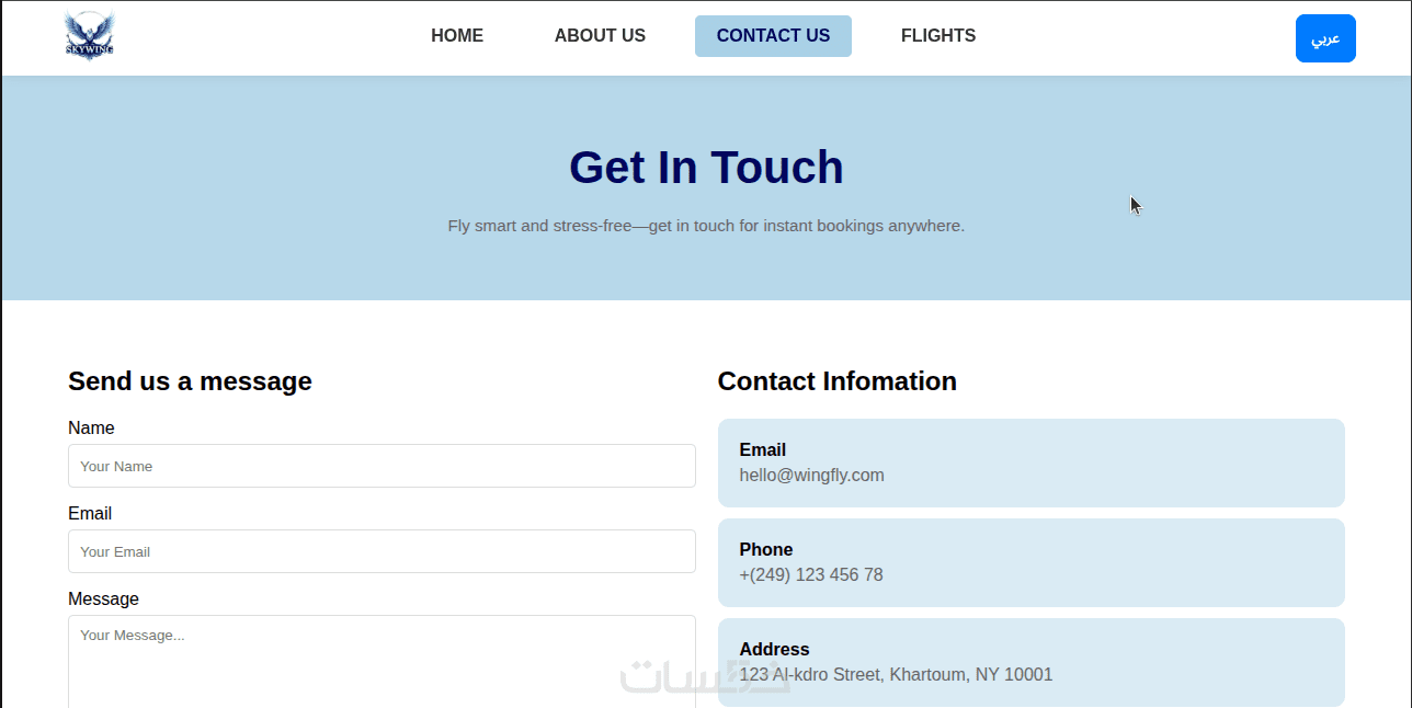 - صفحة للتواصل و ارسال رسائل عبر الايميل و مختلف وسائل التواصل