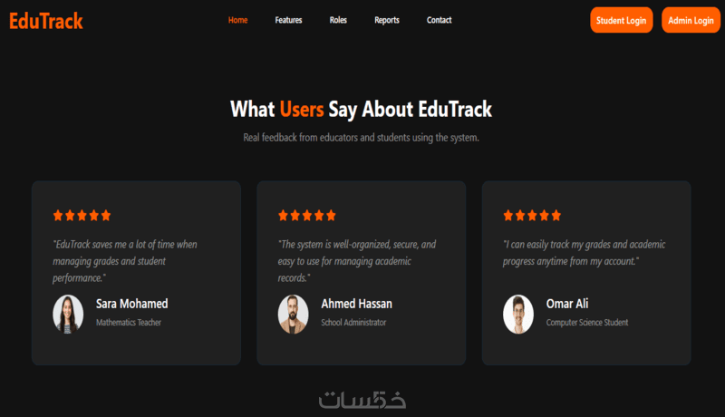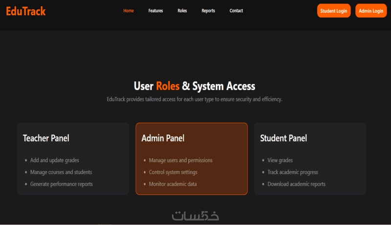 تصميم مرتب وسهل الاستخدام لكل الطلاب والمدرسين والإدارة