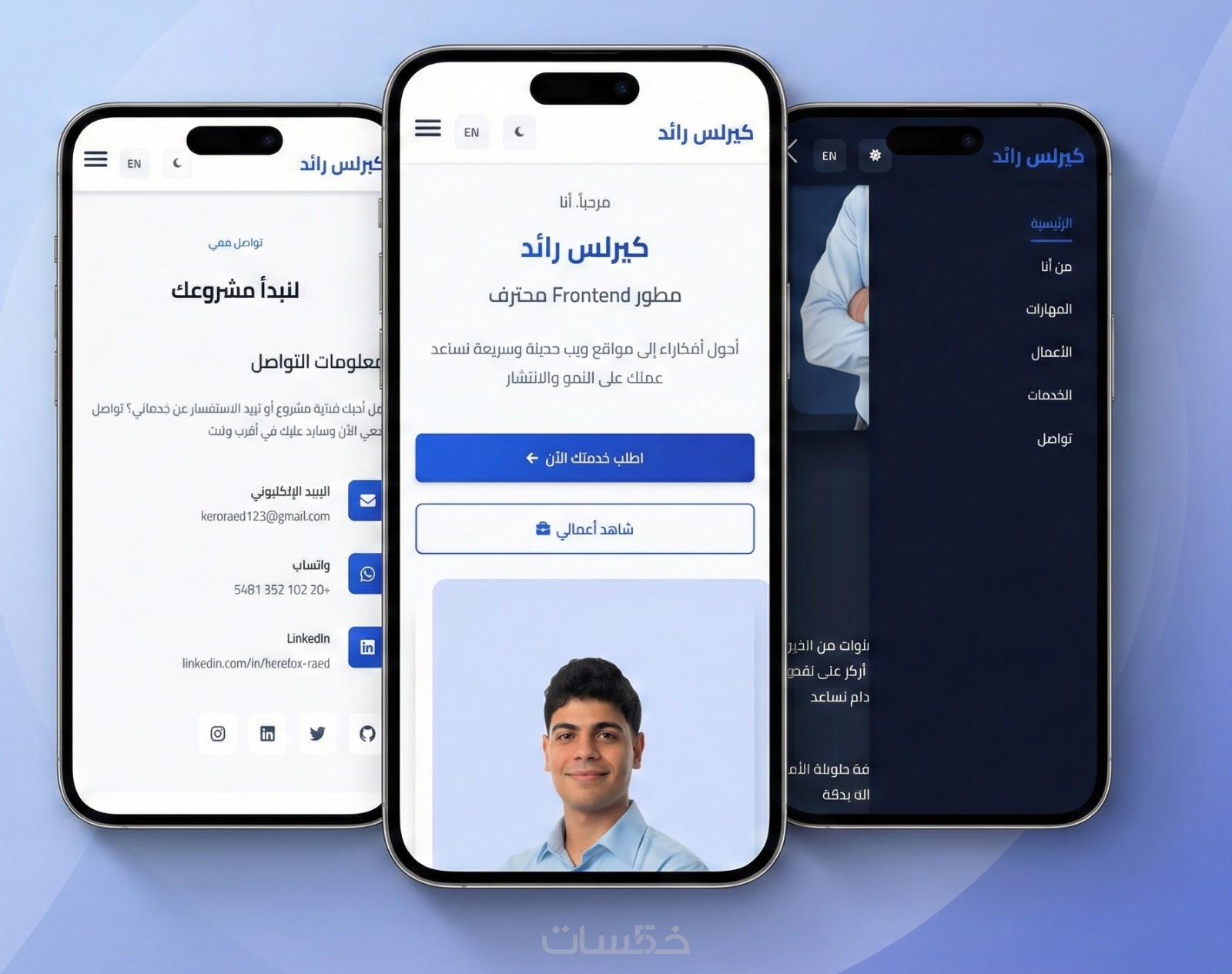 ستستلم موقع بورتفوليو شخصي احترافي جاهز للاستخدام لعرض مهاراتك وخدماتك وأعمالك بشكل عصري.