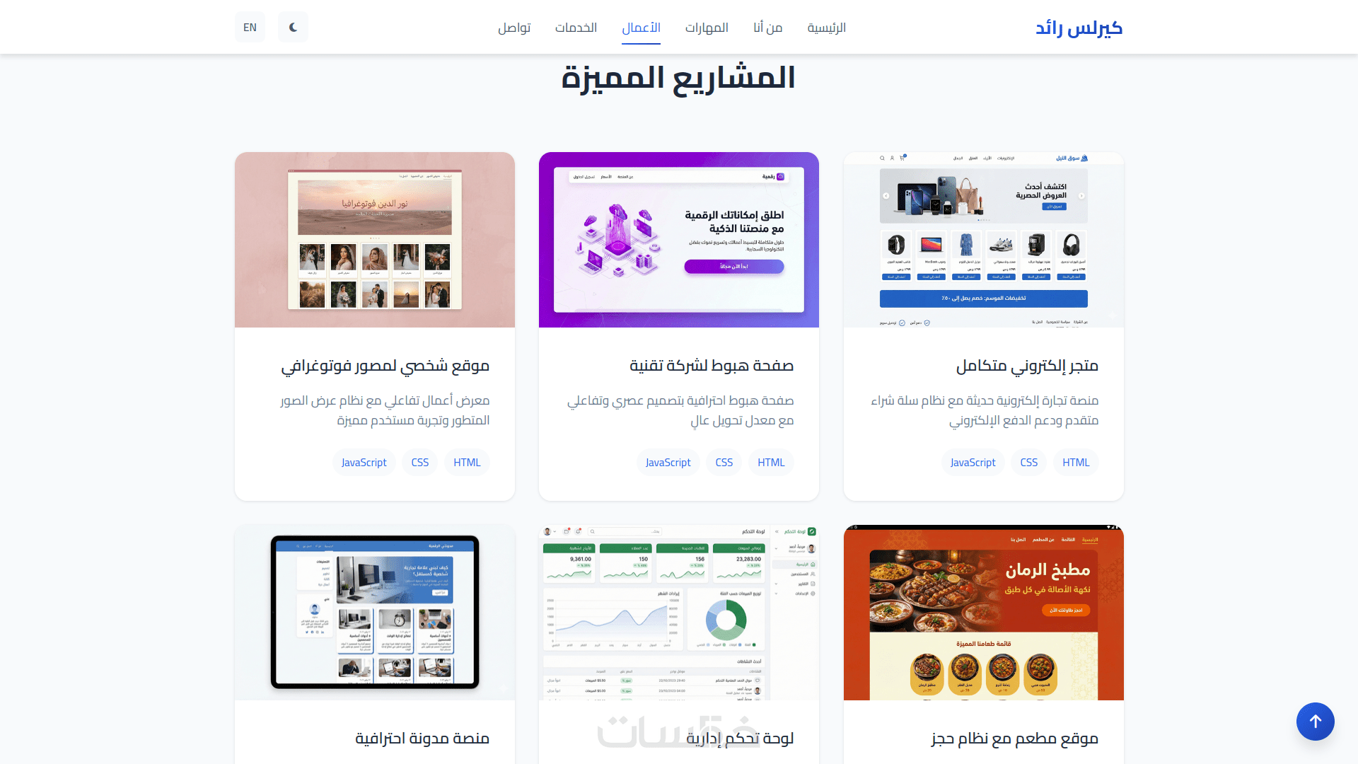 صفحة الأعمال (Portfolio / Projects)