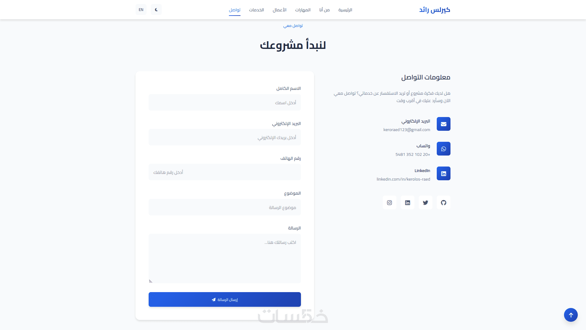 صفحة تواصل (بدون ربط Backend)