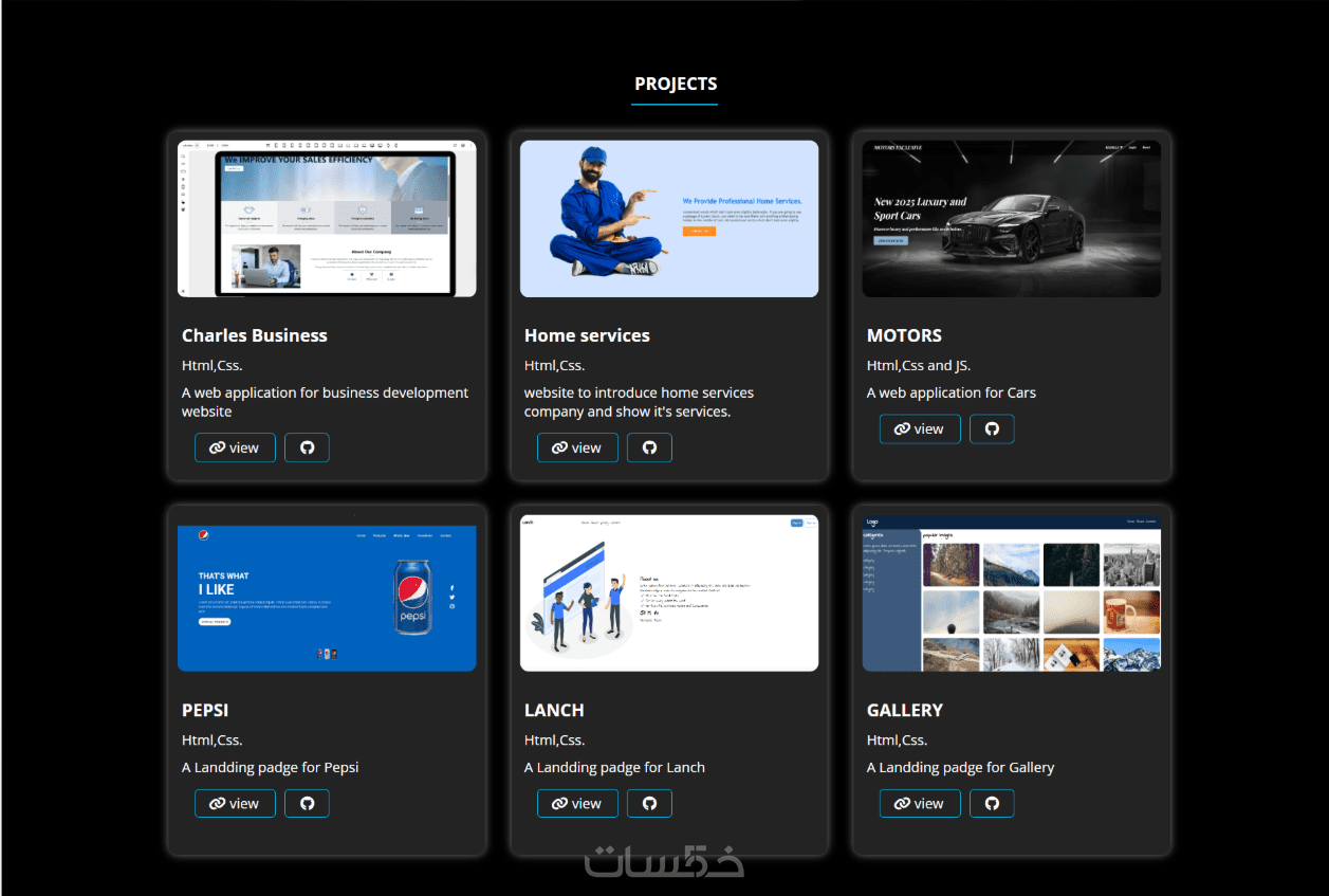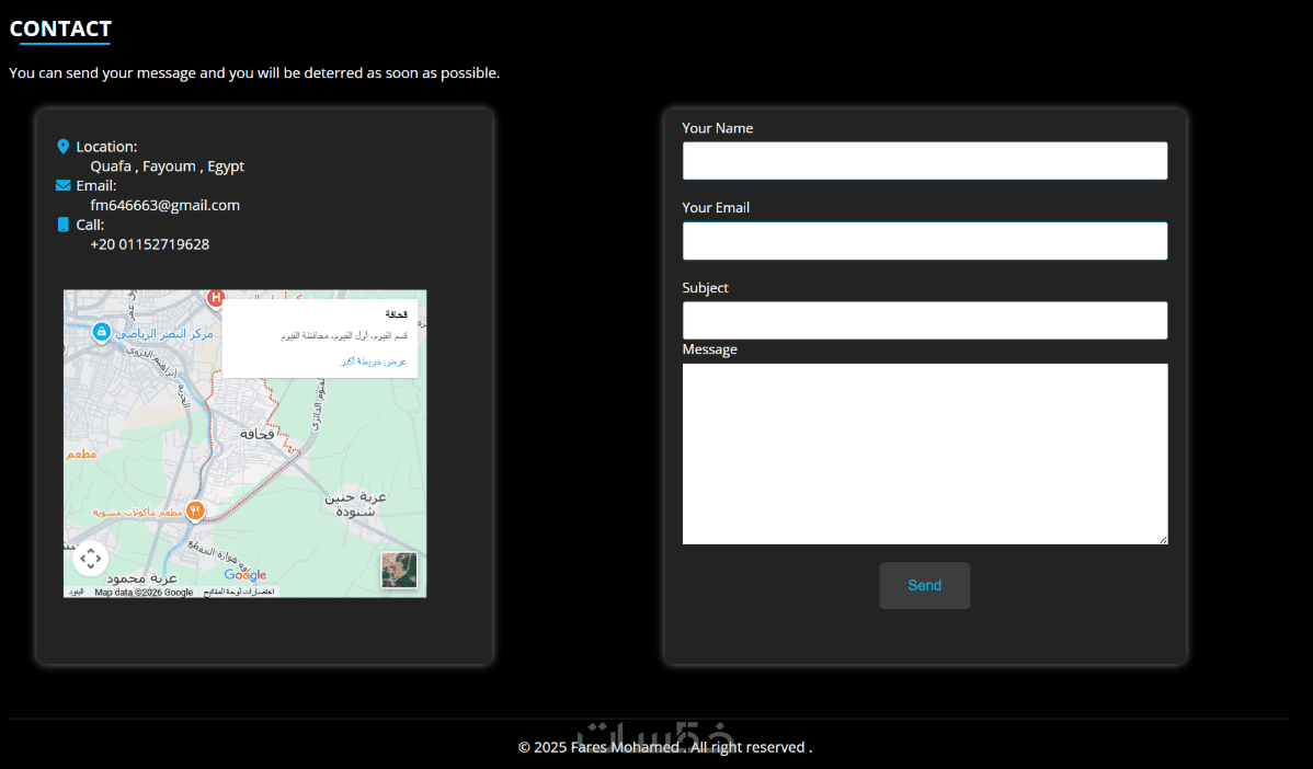 - صفحات أساسية (الرئيسية – من أنا – أعمالي – تواصل معي)