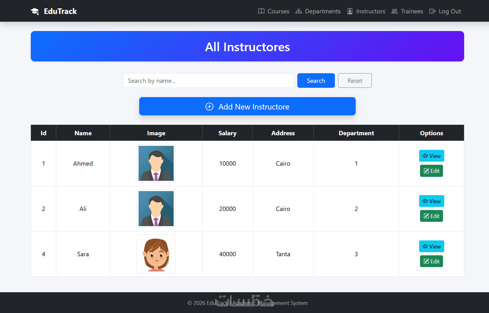 -إدارة الكورسات - الاقسام - المدربين - المتدربين - عرض النتائج