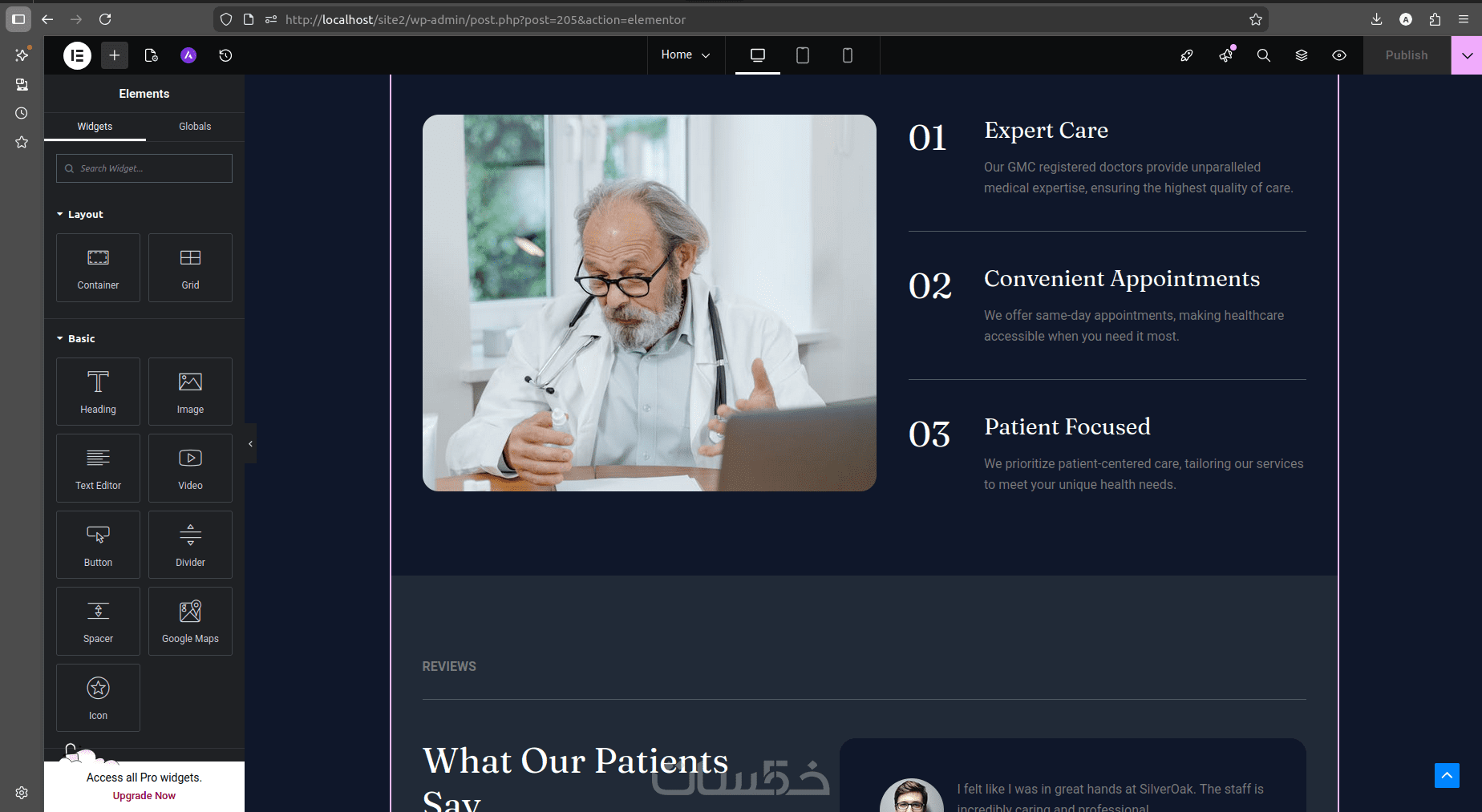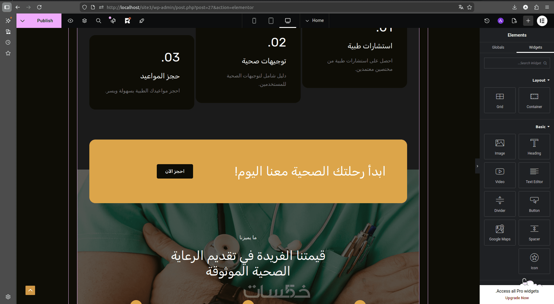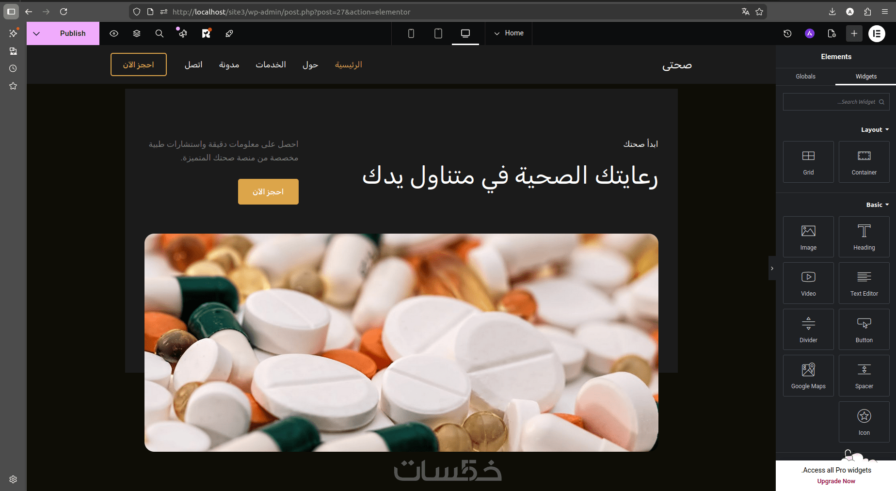 موقع عيادة طبية احترافي مثبت على ووردبريس وجاهز للاستخدام.