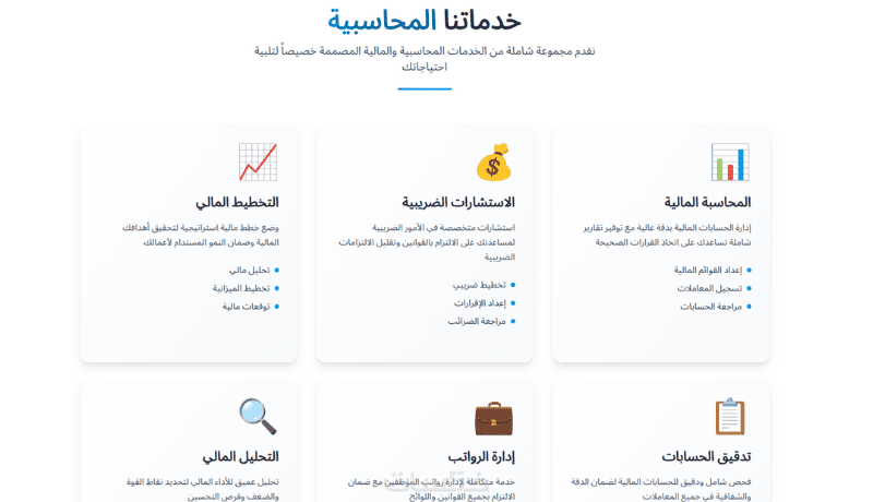 مثال موقع خدمات محاسبيه مكون من صفحه واحده بها 3 أقسام احترافية تشمل:-