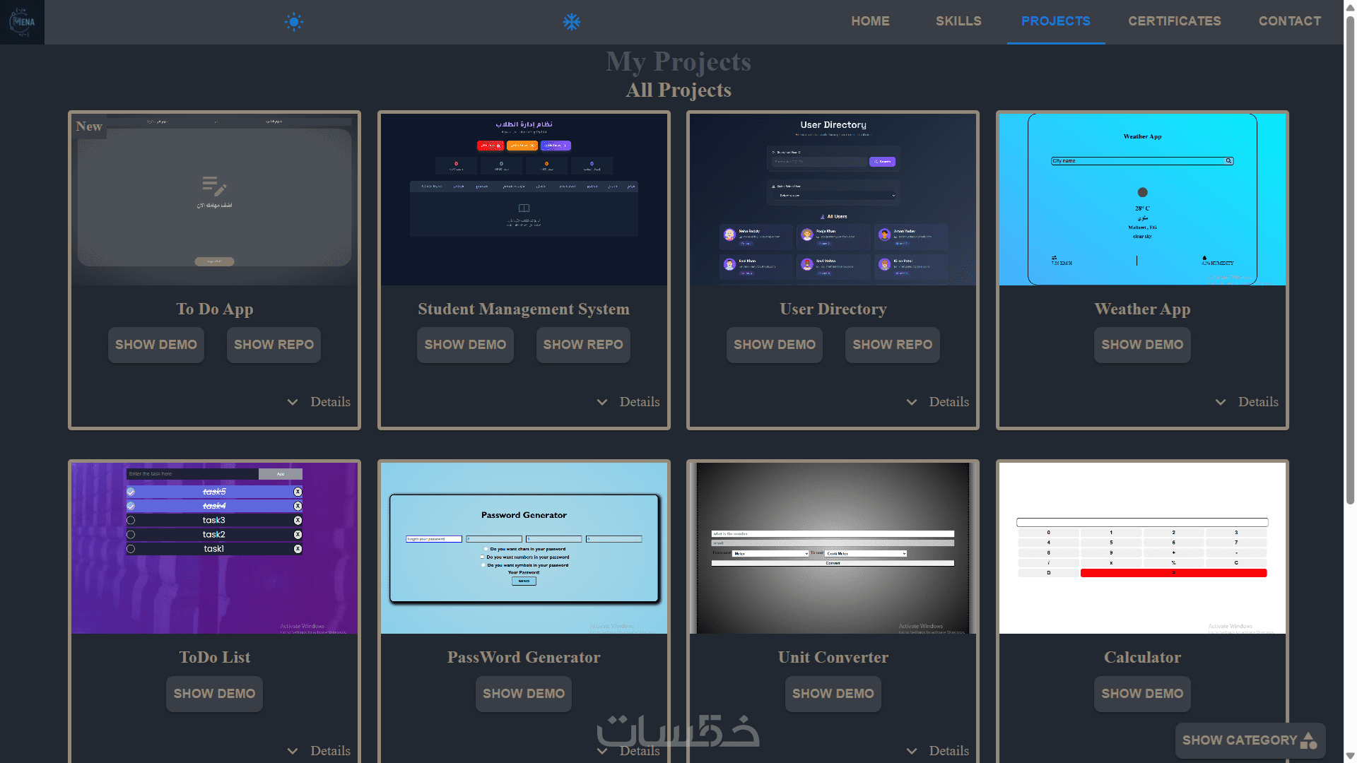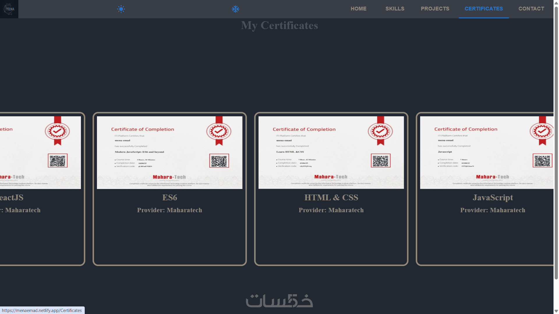 ستحصل على موقع كامل مصمم ومطور باستخدام React JS، جاهز للاستخدام أو التعديل، يعرض مهاراتك ومشاريعك بشكل احترافي، مع تصميم عصري وتجربة مستخدم سلسة.