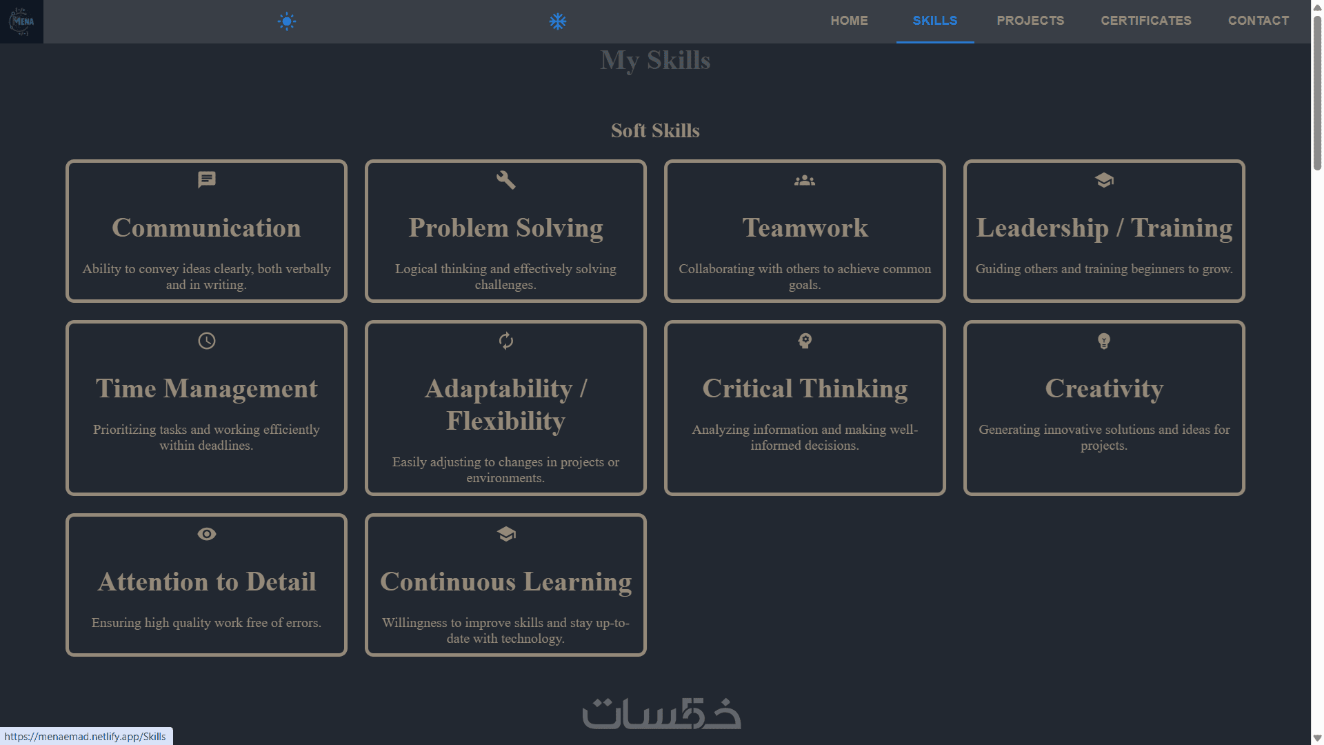 Skills: لعرض مهاراتك التقنية والبرمجية بطريقة جذابة.