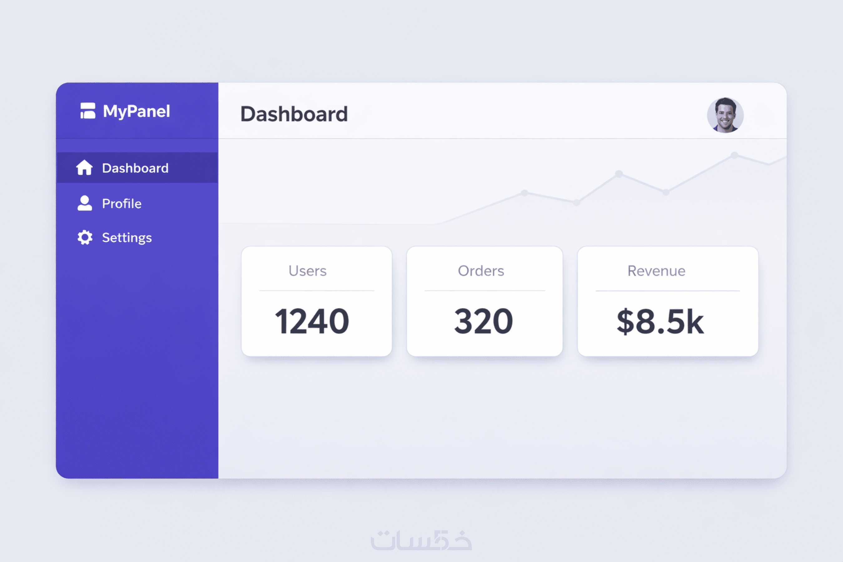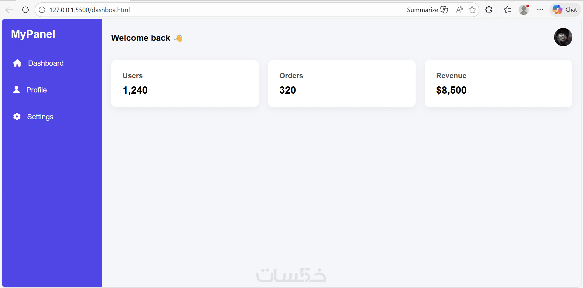 HTML & CSS فقط، مناسبة للمواقع التعريفية، صفحات الهبوط (Landing Pages)، أو واجهات Dashboard بشكل Static.