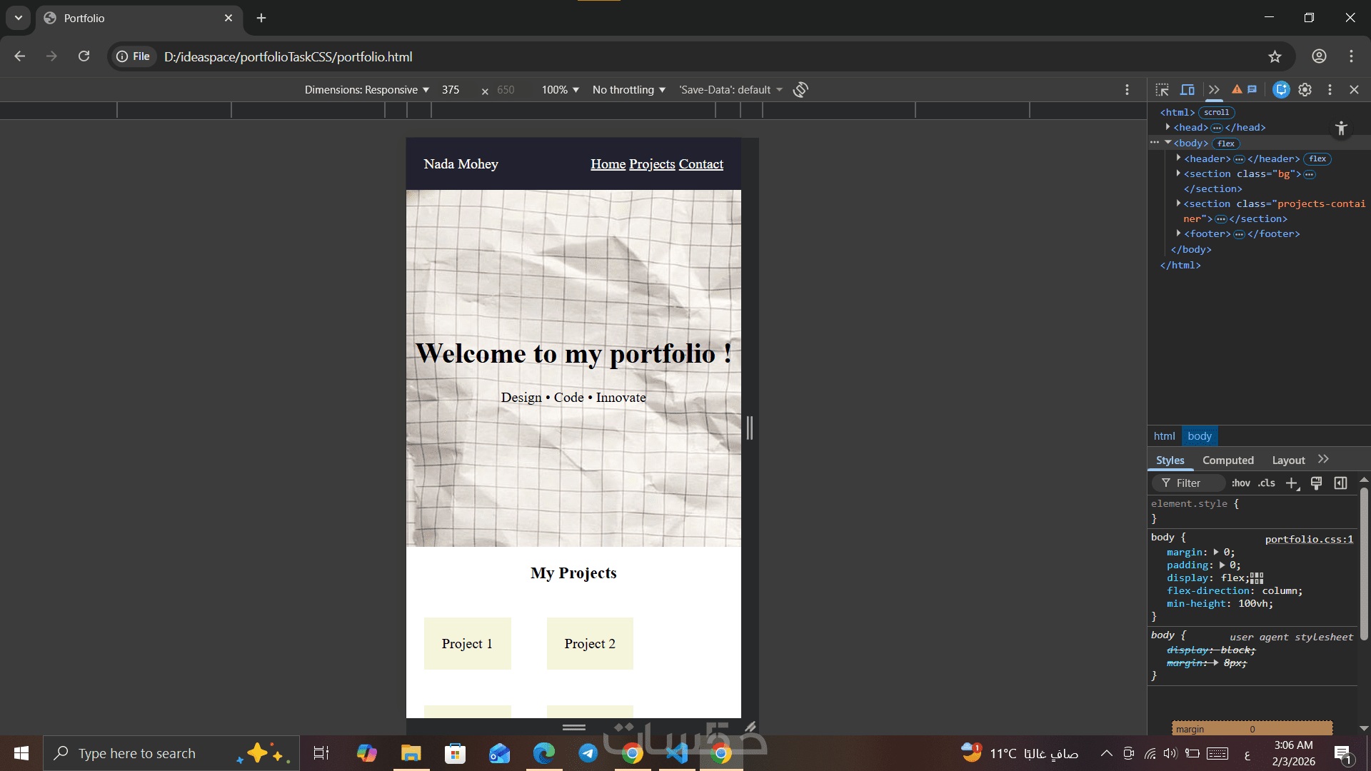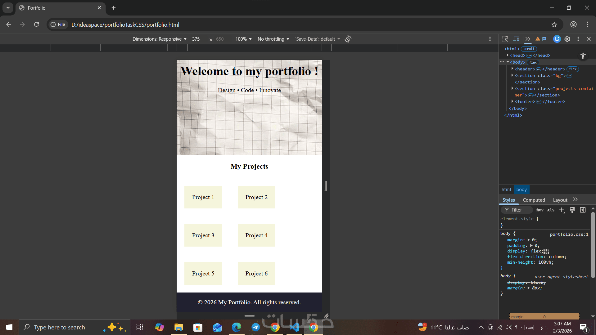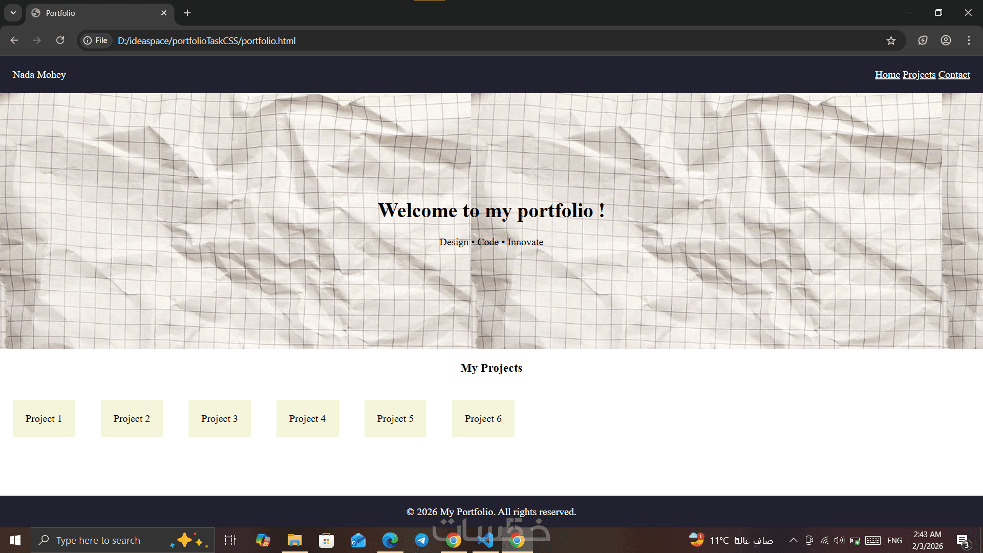تم تصميمه باستخدام html & css باستخدام semantic elements لتحسين عمليات البحث كما تم استخدام flexbox من أجل التجاوب والتناسب على الشاشات المختلفة