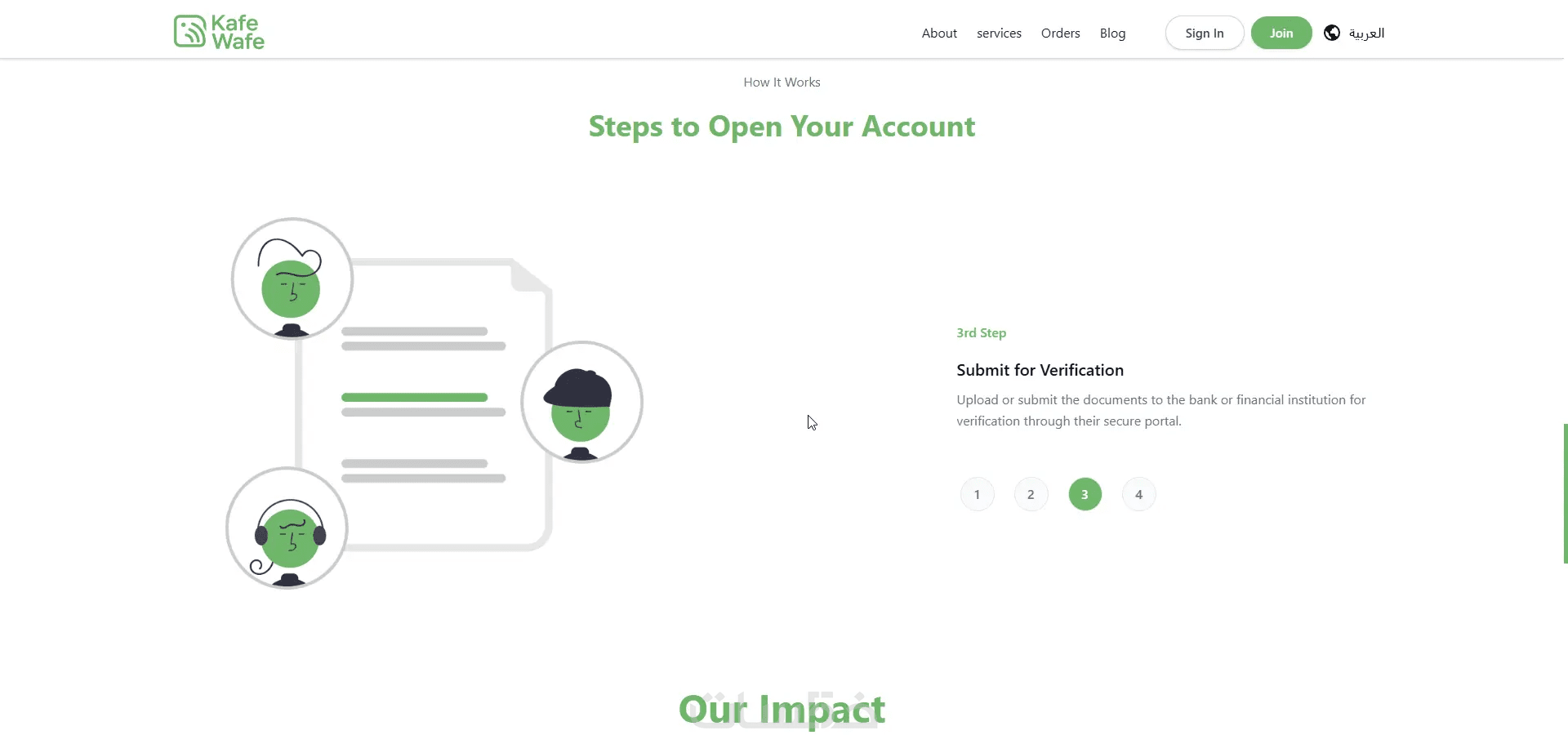 يبدأ التنفيذ بواجهة رئيسية منظمة متعددة الأقسام، مع بنية تقنية تسمح بإضافة الصفحات والخصائص مستقبلًا دون إعادة بناء.