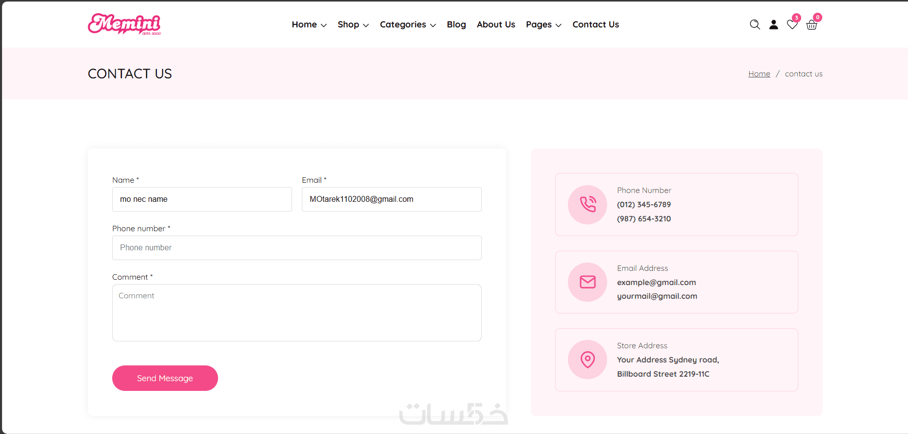 الصفحة الرئيسية , وصفحة المنتجات , وصفحة تفاصيل المنتج , وصفحة من نحن , وصفحة تواصل معنا