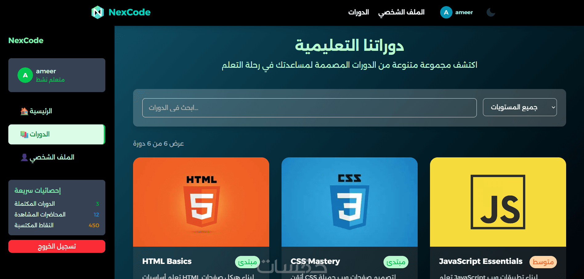 - واجهة React جاهزة للعمل ومتوافقة مع جميع الأجهزة.