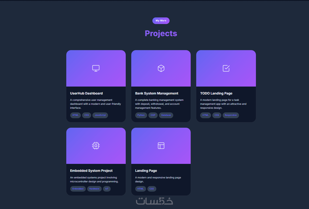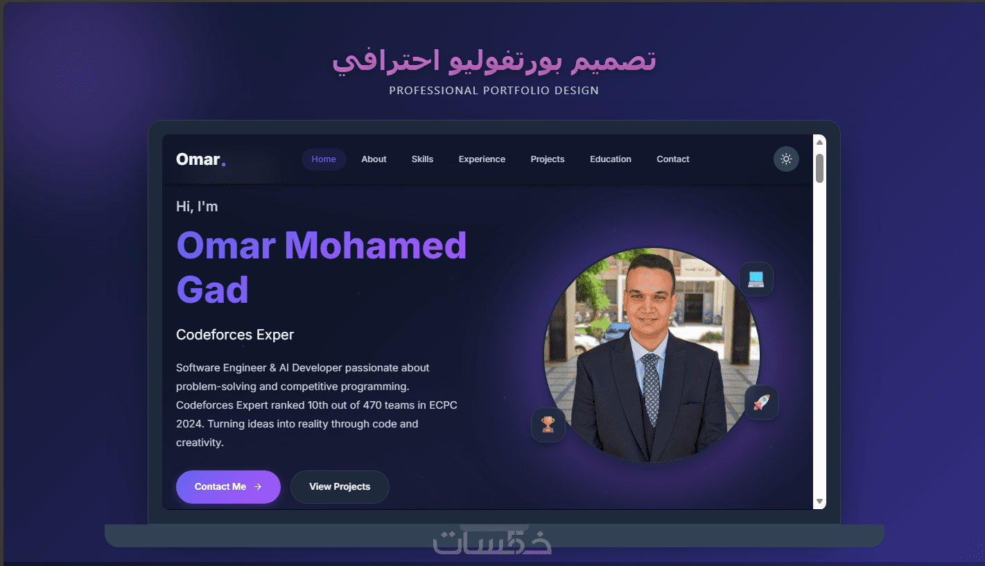 هل ترغب في عرض مهاراتك وأعمالك بطريقة احترافية تجذب انتباه العملاء وأصحاب العمل؟ أقدم لك خدمة تصميم وبرمجة موقع شخصي (Portfolio) عصري ومتكامل، مبني بأحدث التقنيات لضمان السرعة والأداء العالي.